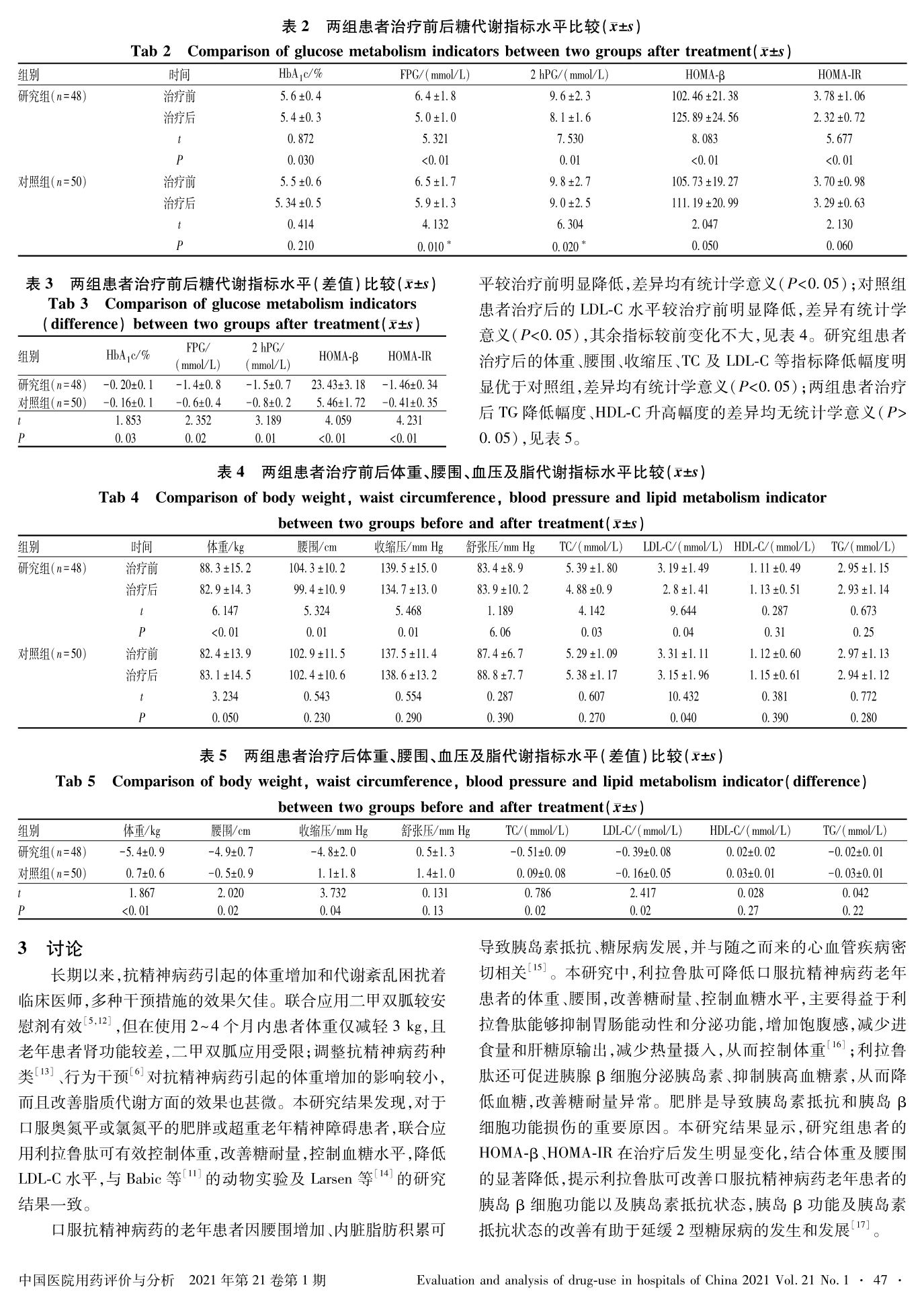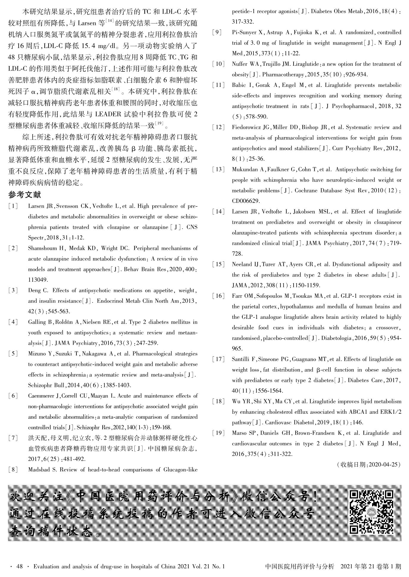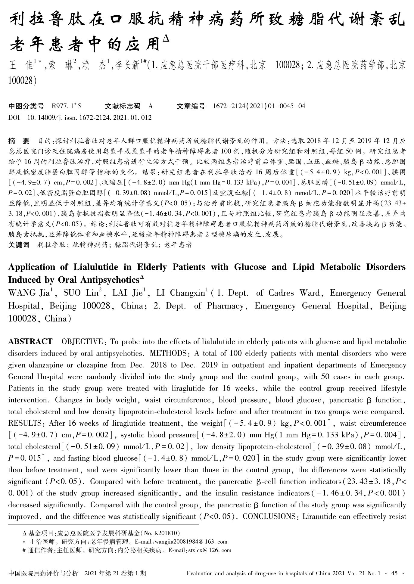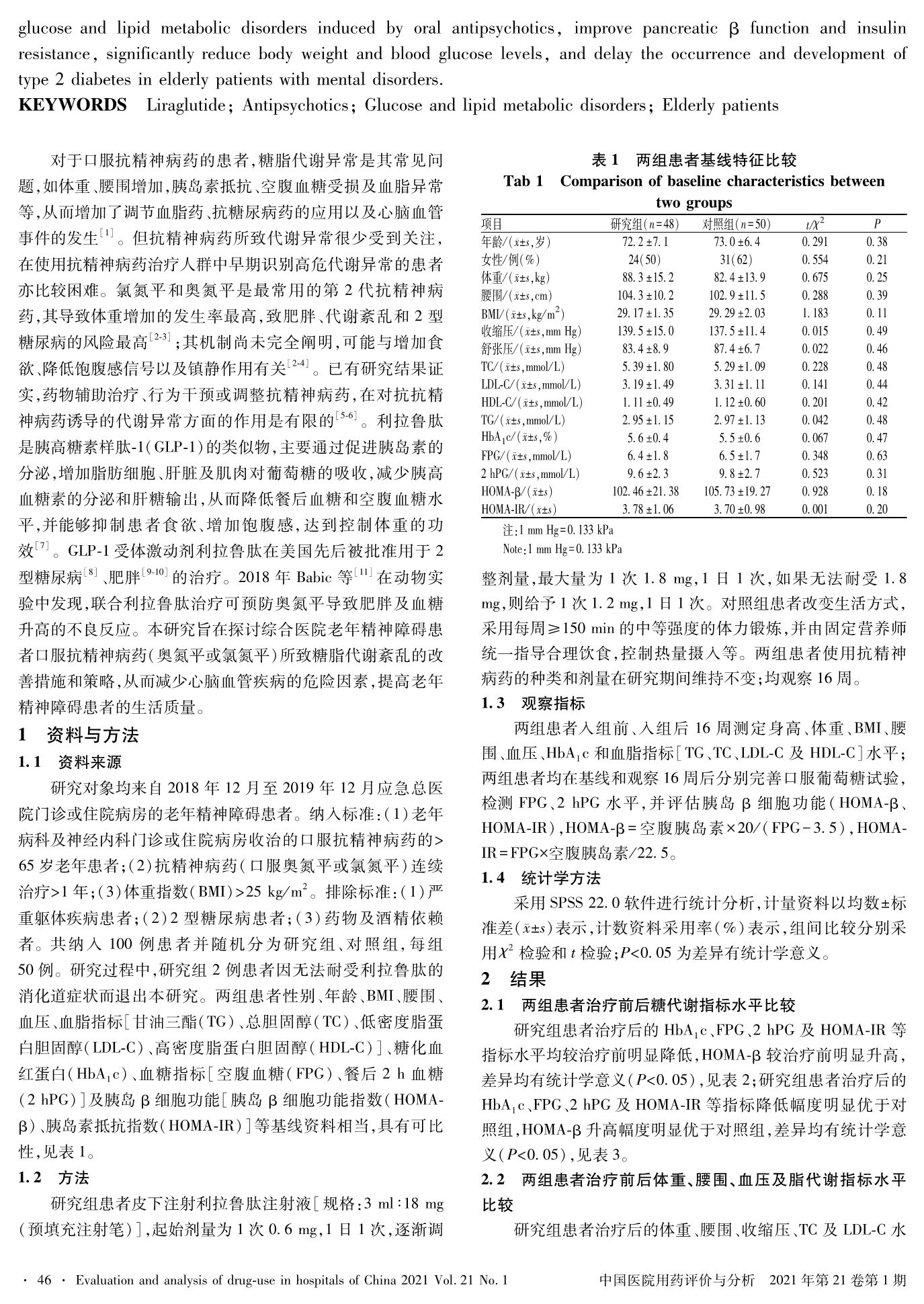 利拉鲁肽在口服抗精神病药所致糖脂代谢紊乱老年患者中的应用