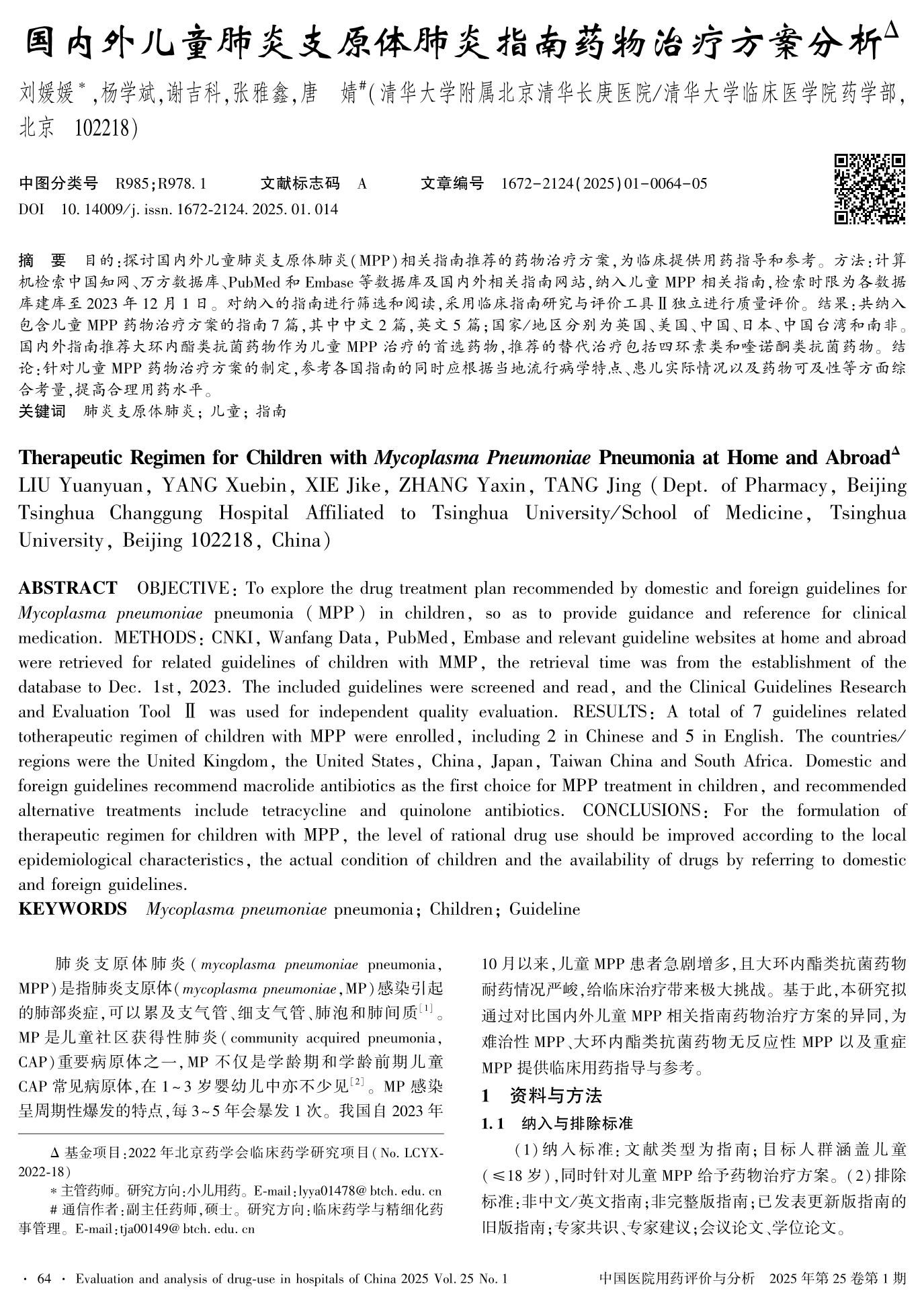 Therapeutic Regimen for Children with Mycoplasma Pneumoniae Pneumonia at Home and Abroad
