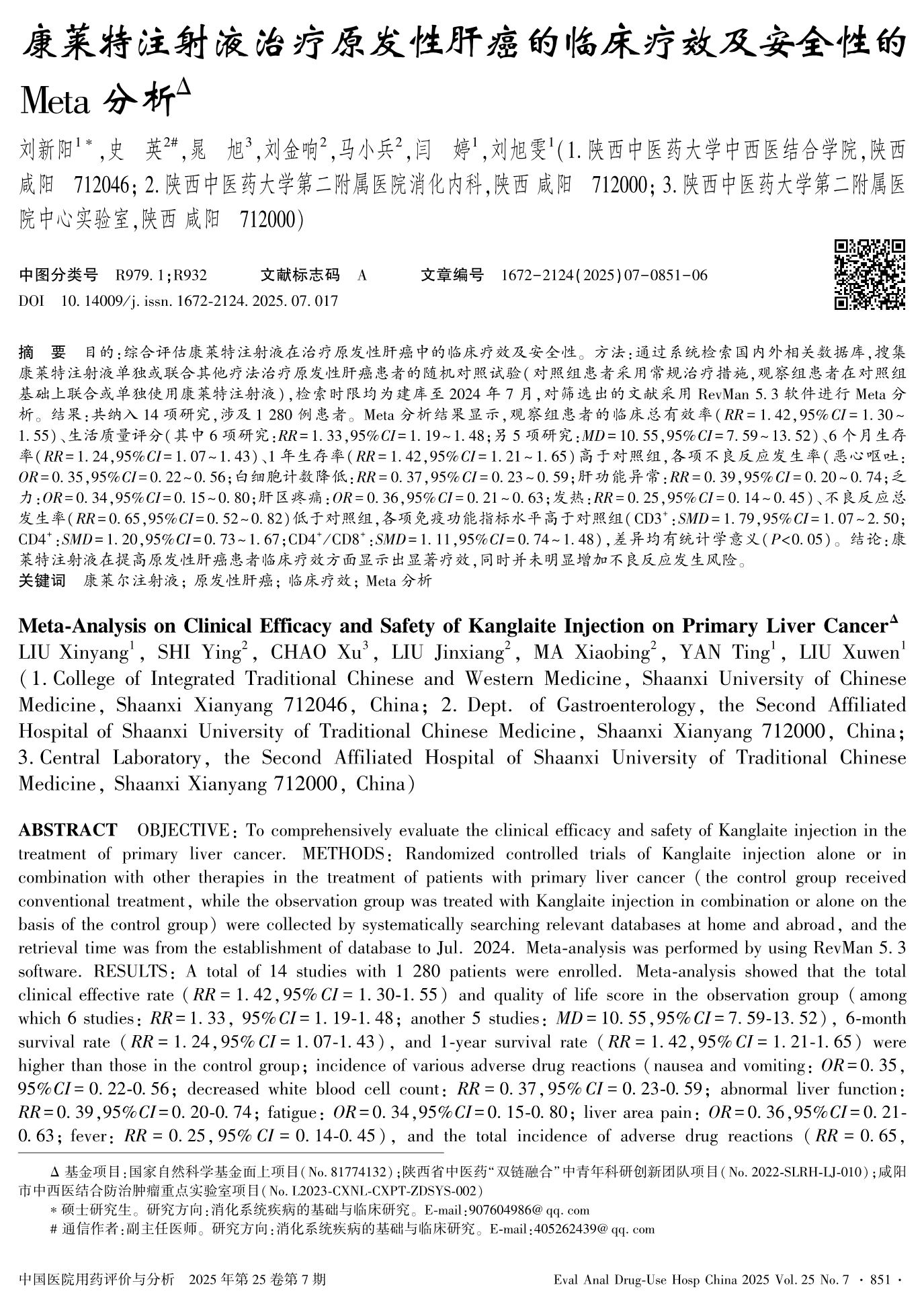 Meta-Analysis on Clinical Efficacy and Safety of Kanglaite Injection on Primary Liver Cancer