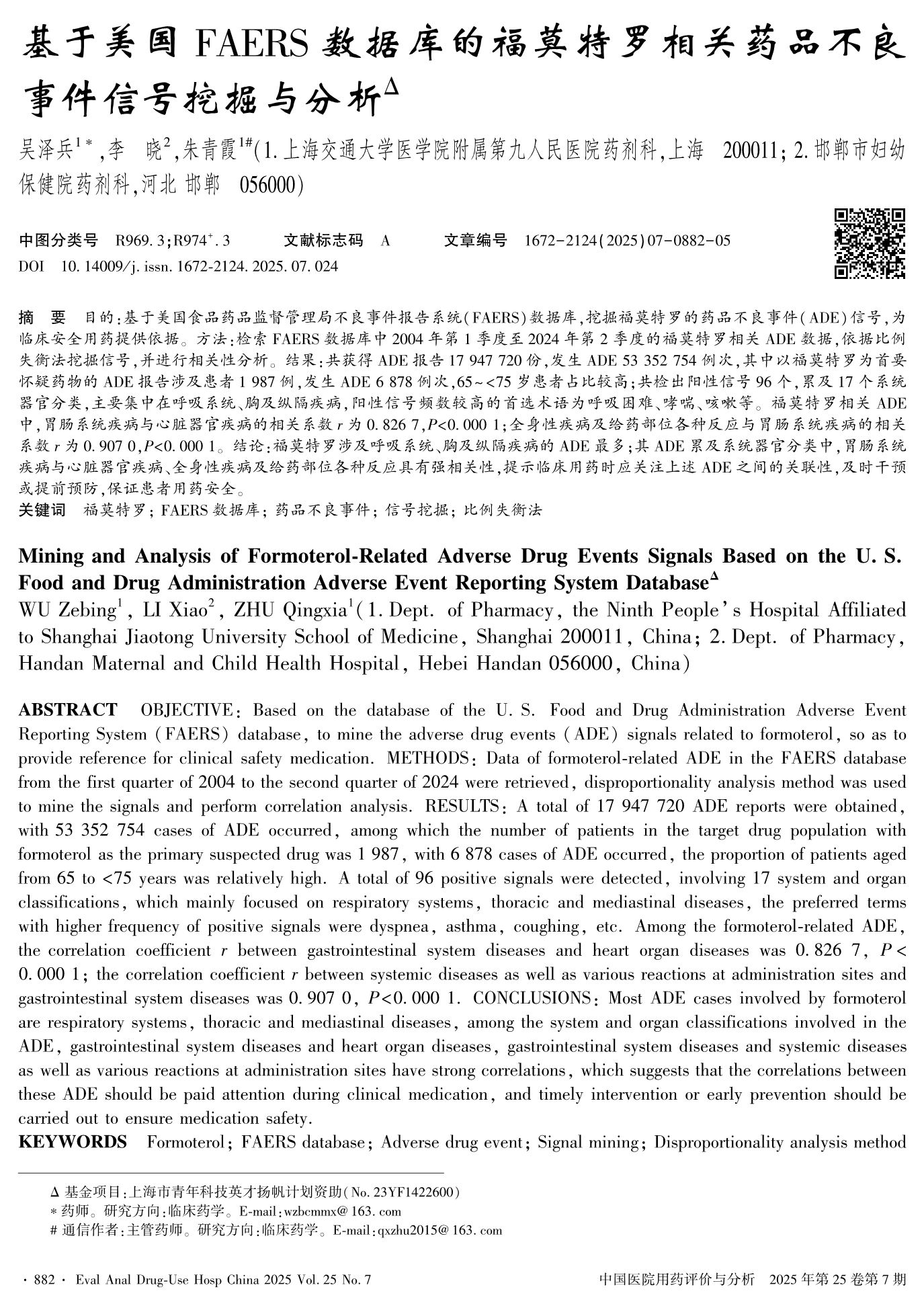 Mining and Analysis of Formoterol-Related Adverse Drug Events Signals Based on the U. S. Food and Drug Administration Adverse Event Reporting System Database