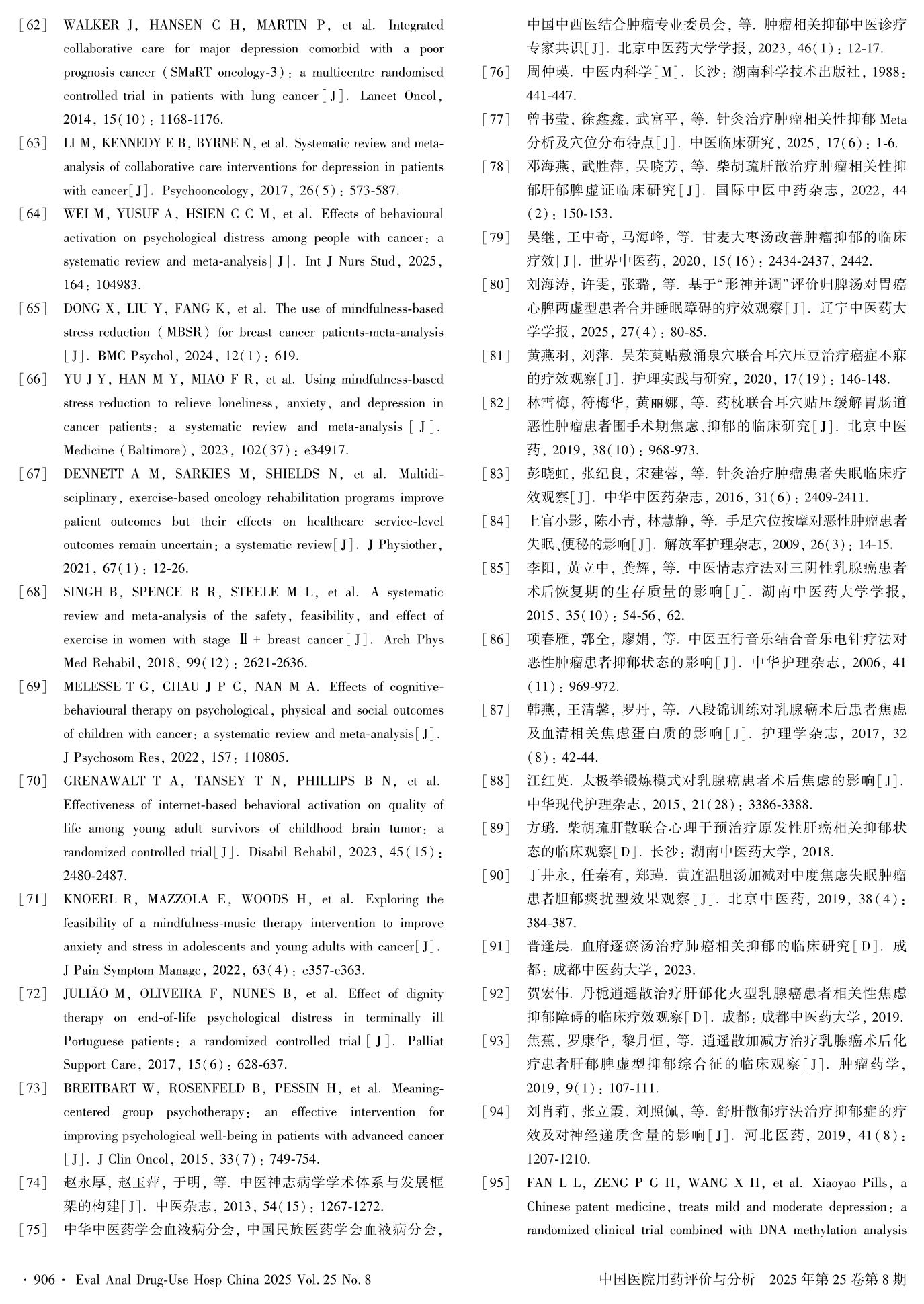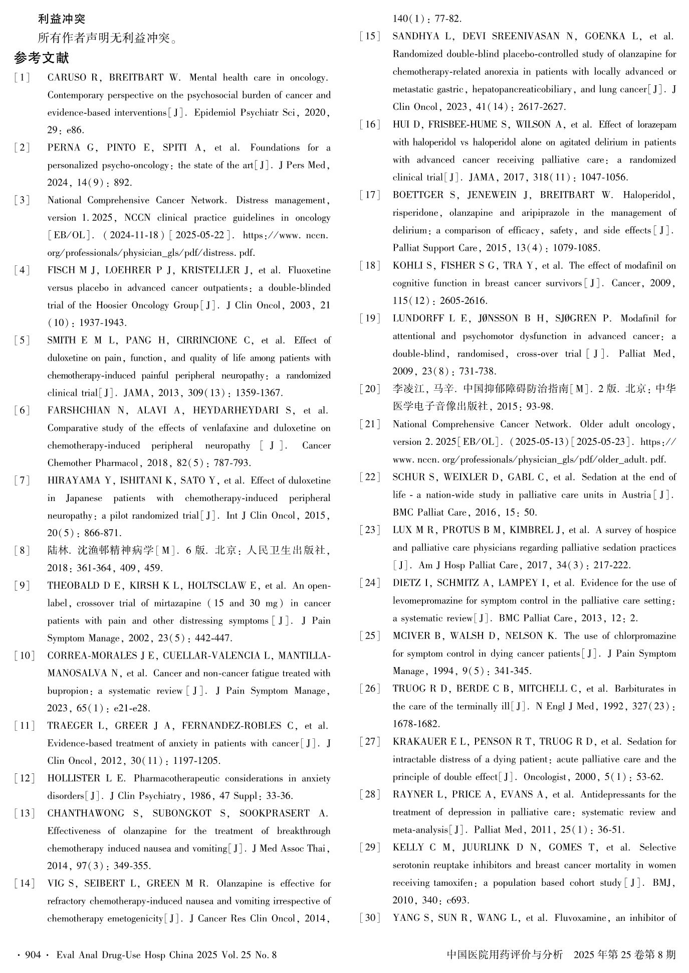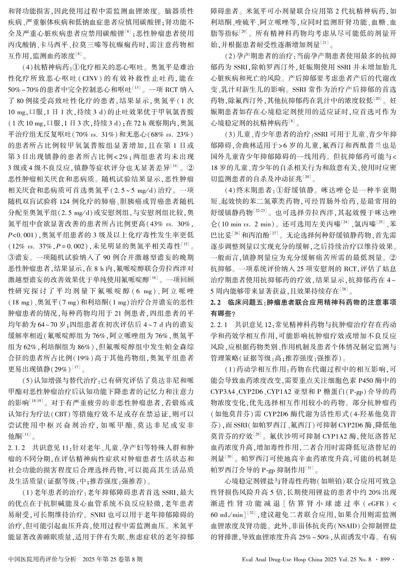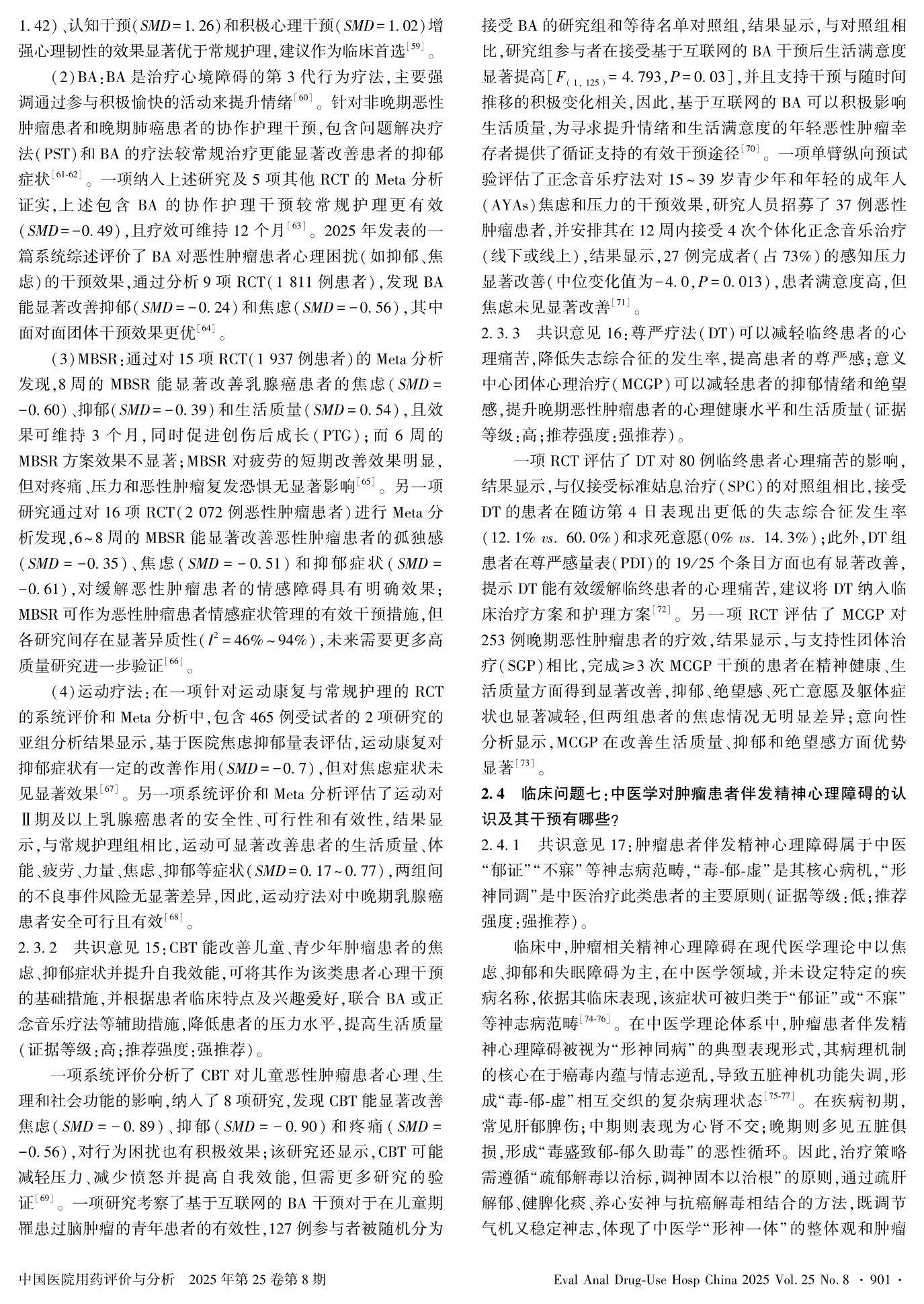 Experts Consensus of Capital Medical University on Full-Process Intervention of Multidisciplinary Diagnosis and Medication Treatment for Mental and Psychological Disorders in Cancer Patients——— Clinical Intervention Section
