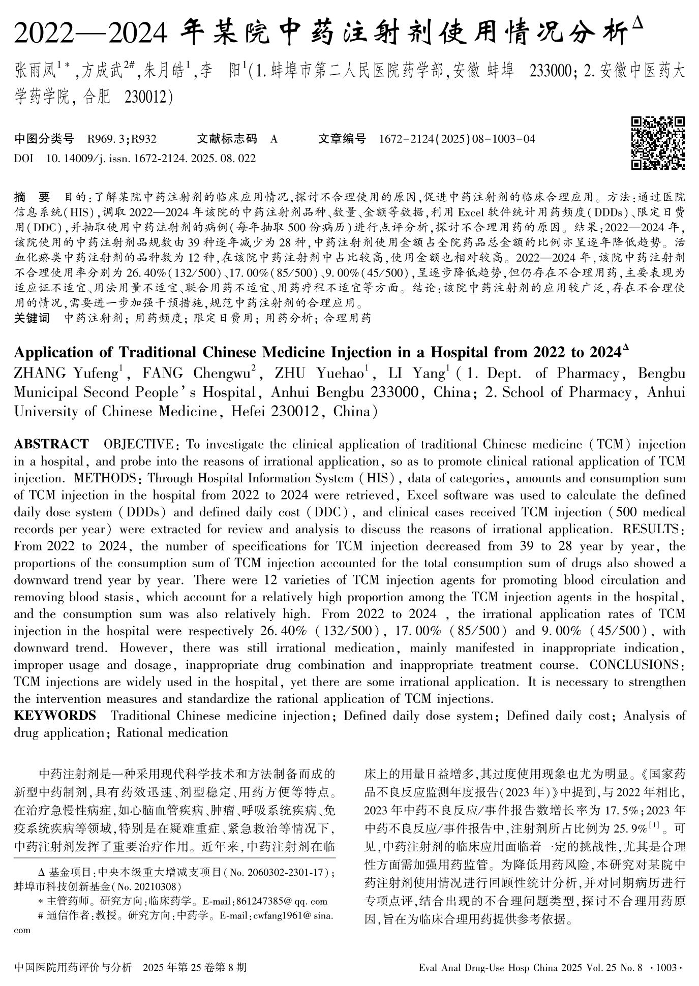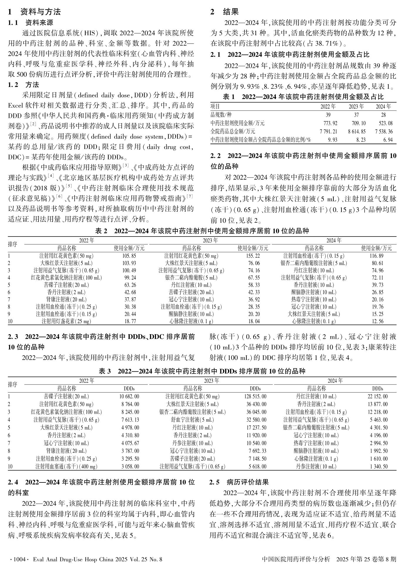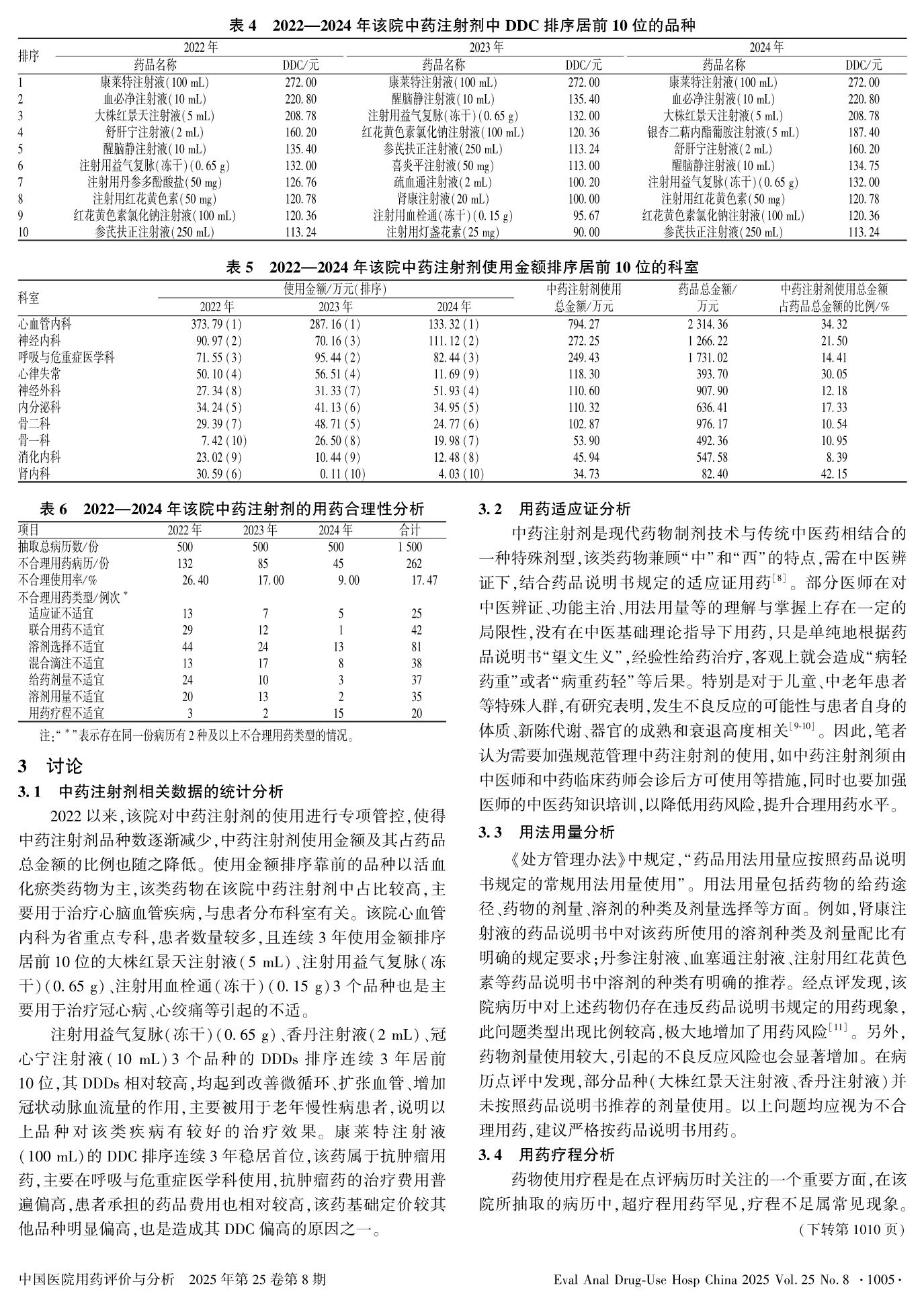 Application of Traditional Chinese Medicine Injection in a Hospital from 2022 to 2024