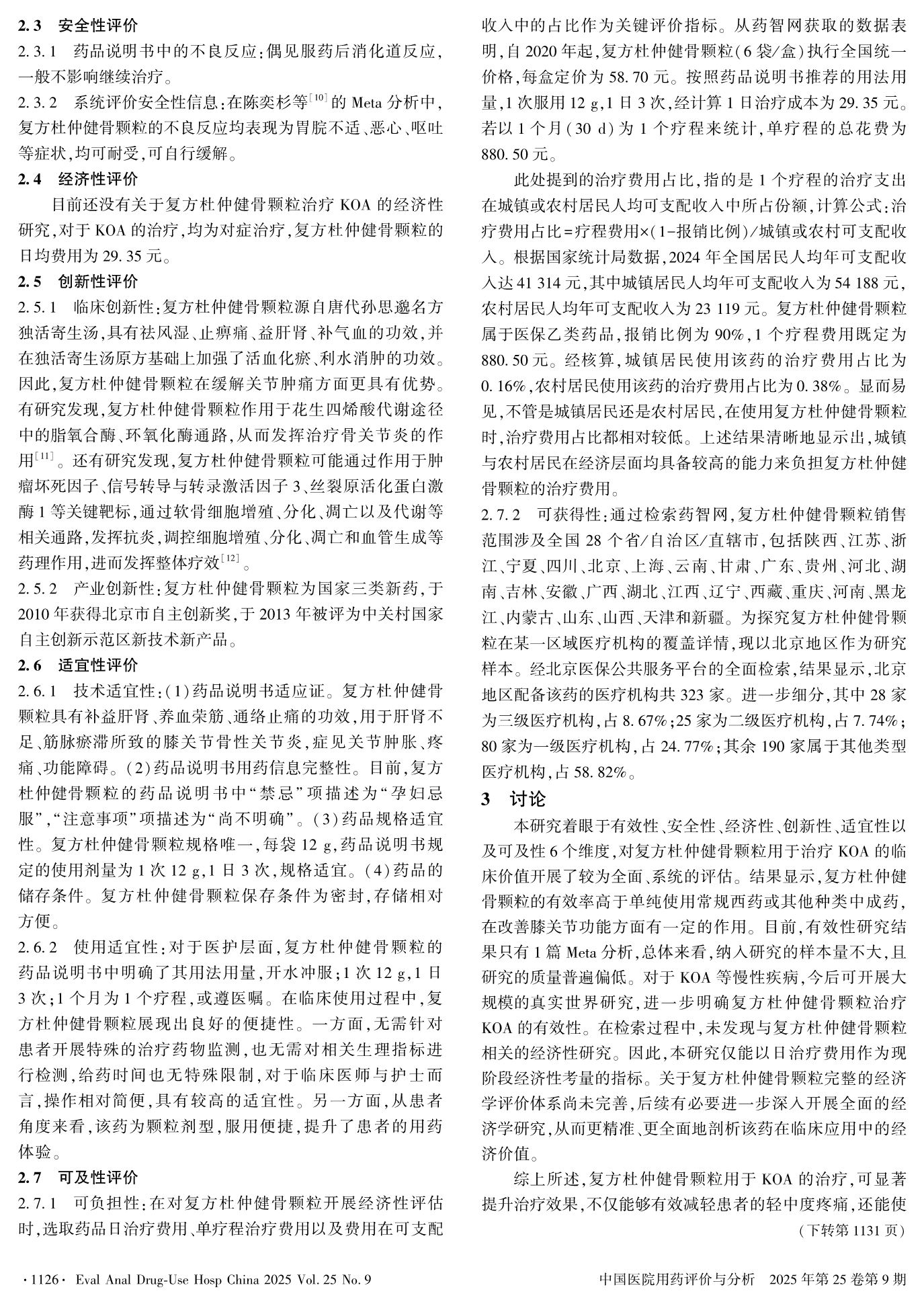 Comprehensive Evaluation of Compound Duzhong Jiangu Granules in the Treatment of Knee Osteoarthritis