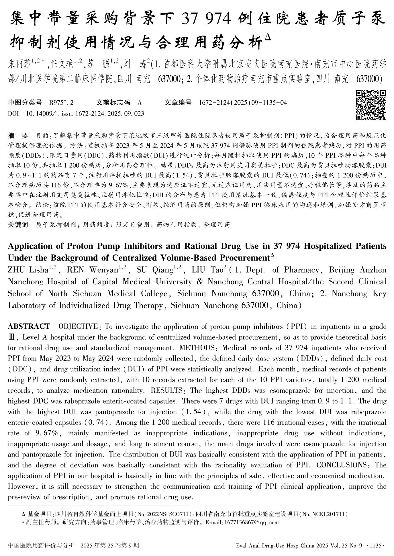 Application of Proton Pump Inhibitors and Rational Drug Use in 37 974 Hospitalized Patients Under the Background of Centralized Volume-Based Procurement