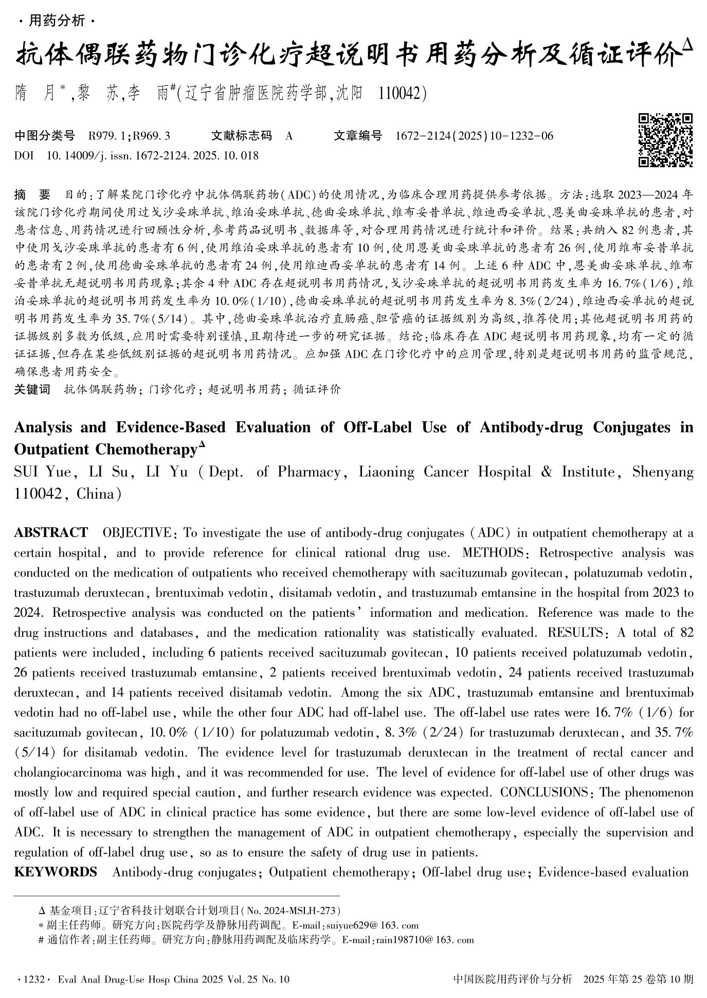 Analysis and Evidence-Based Evaluation of Off-Label Use of Antibody-drug Conjugates in Outpatient Chemotherapy