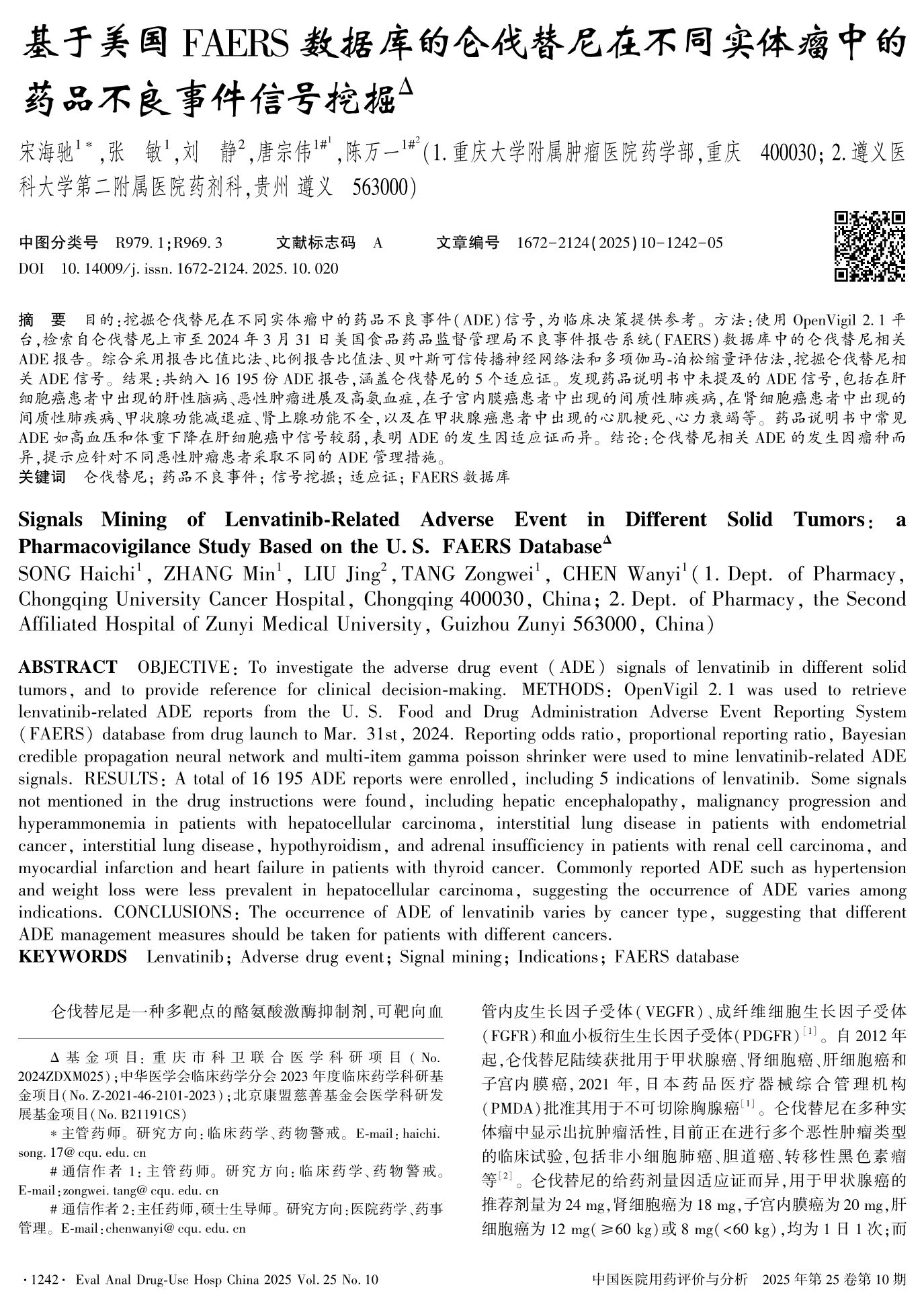 Signals Mining of Lenvatinib-Related Adverse Event in Different Solid Tumors: a Pharmacovigilance Study Based on the U. S.FAERS Database
