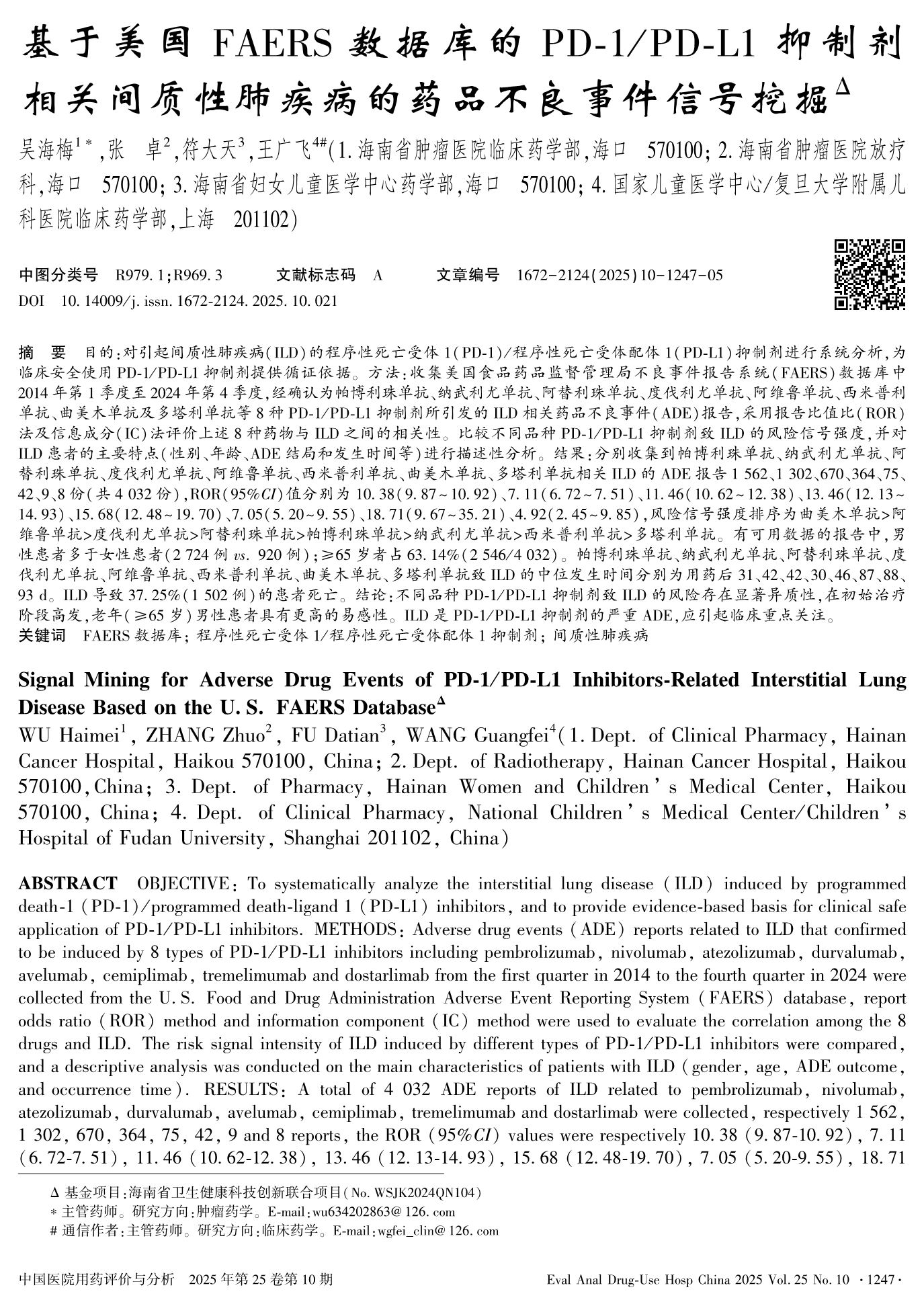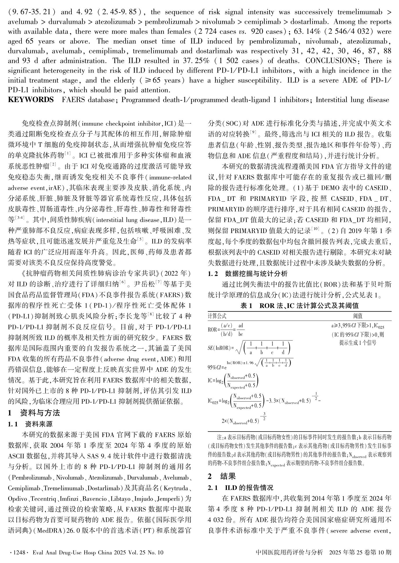 Signal Mining for Adverse Drug Events of PD-1/ PD-L1 Inhibitors-Related Interstitial Lung Disease Based on the U. S. FAERS Database