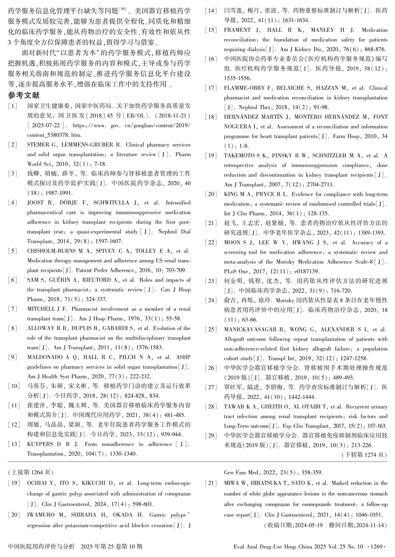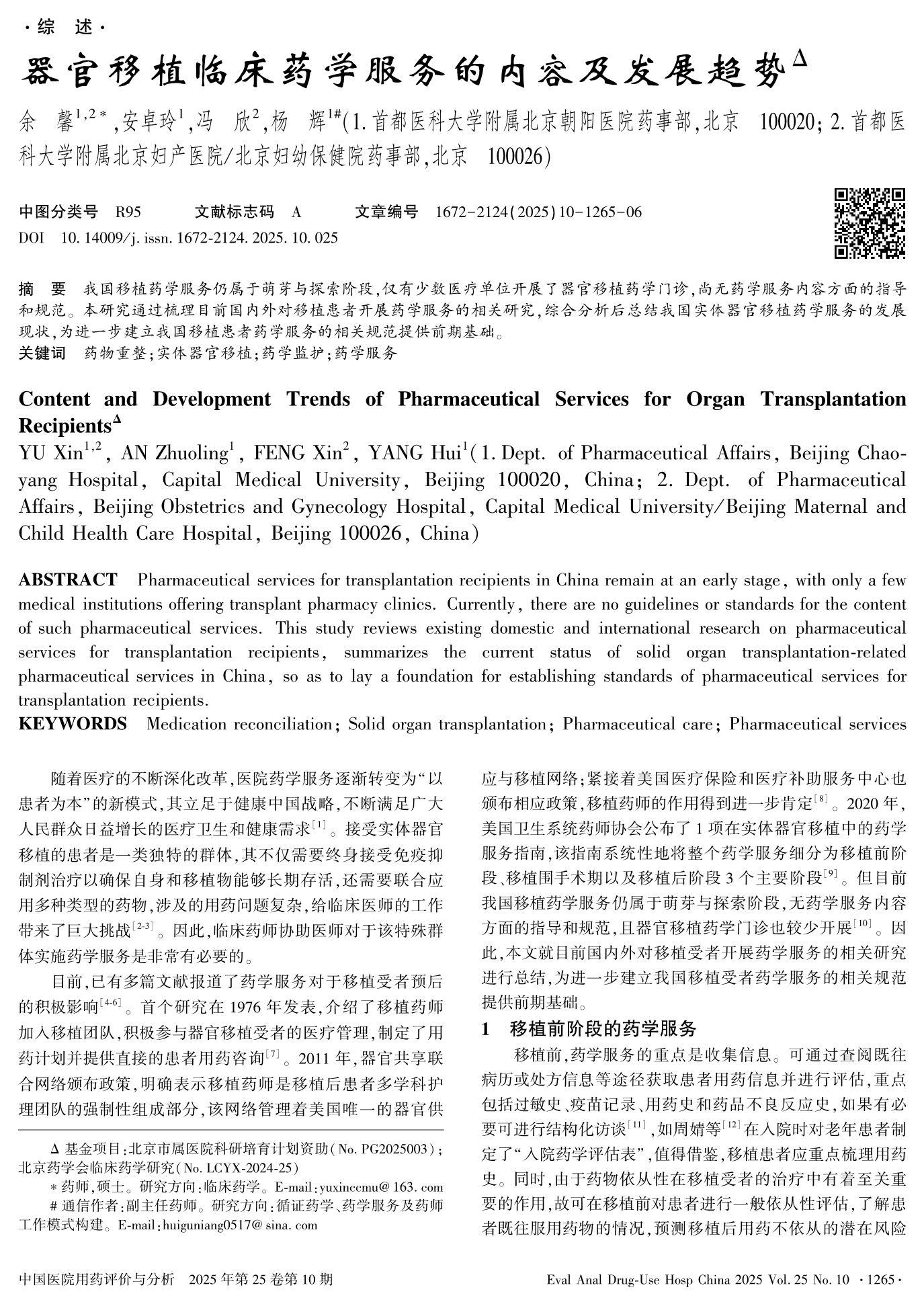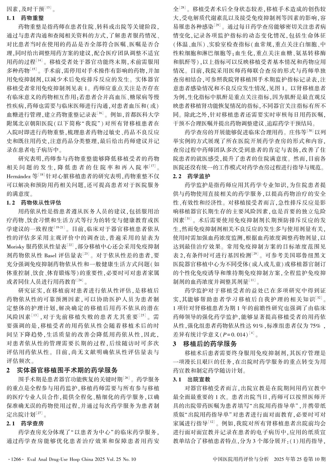 Content and Development Trends of Pharmaceutical Services for Organ Transplantation Recipients