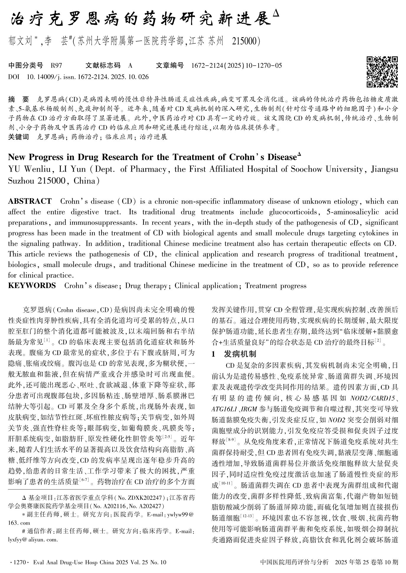 New Progress in Drug Research for the Treatment of Crohn’s Disease