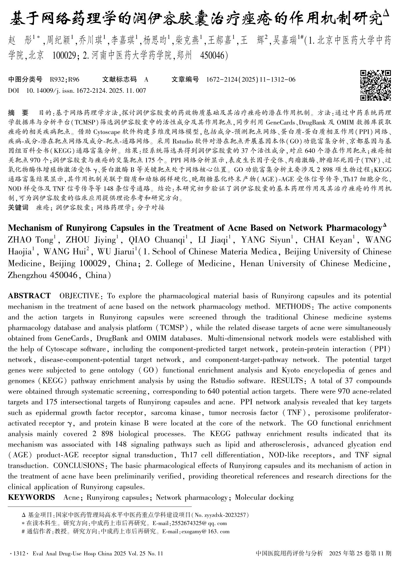 Mechanism of Runyirong Capsules in the Treatment of Acne Based on Network Pharmacology
