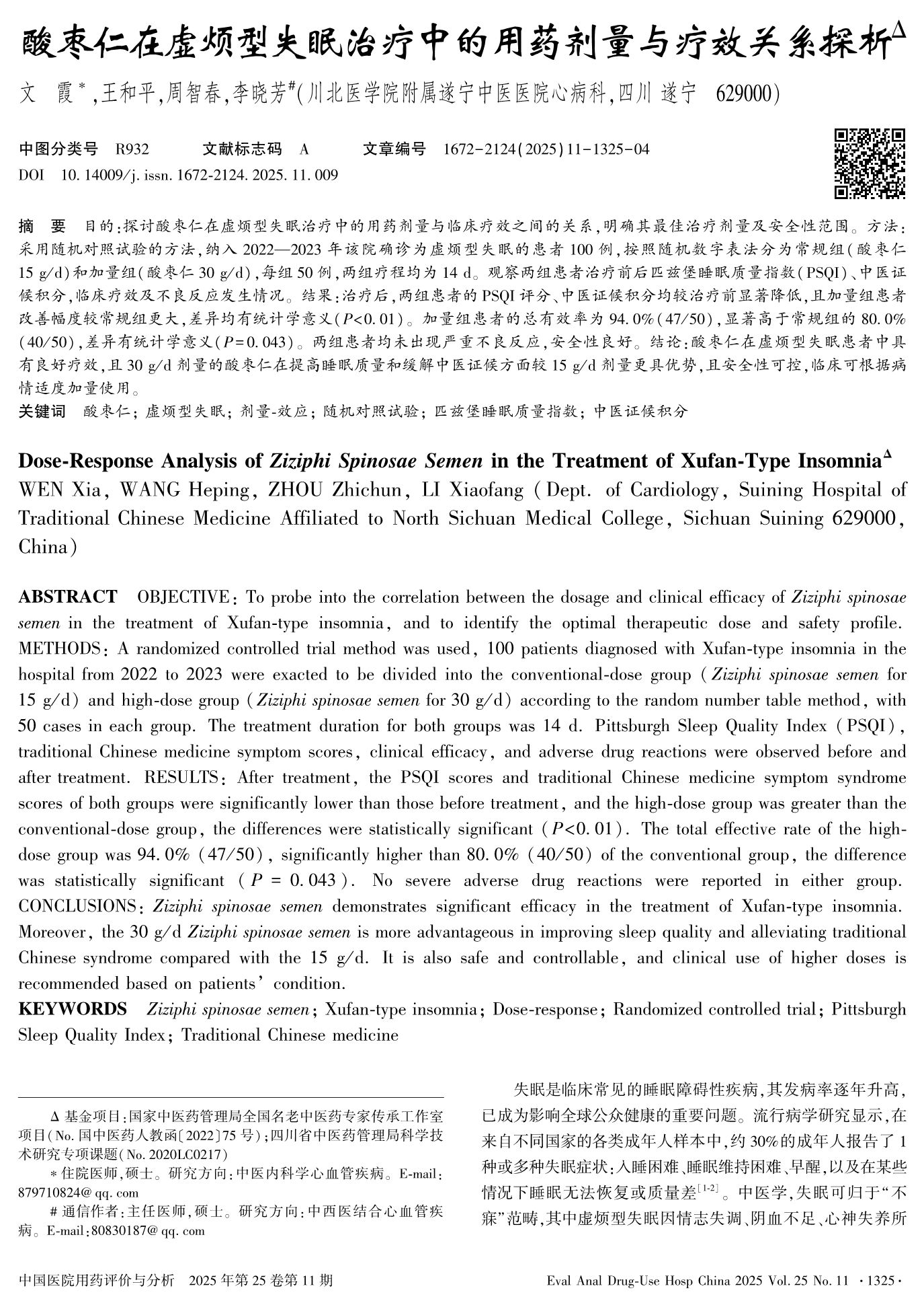 Dose-Response Analysis of Ziziphi Spinosae Semen in the Treatment of Xufan-Type Insomnia