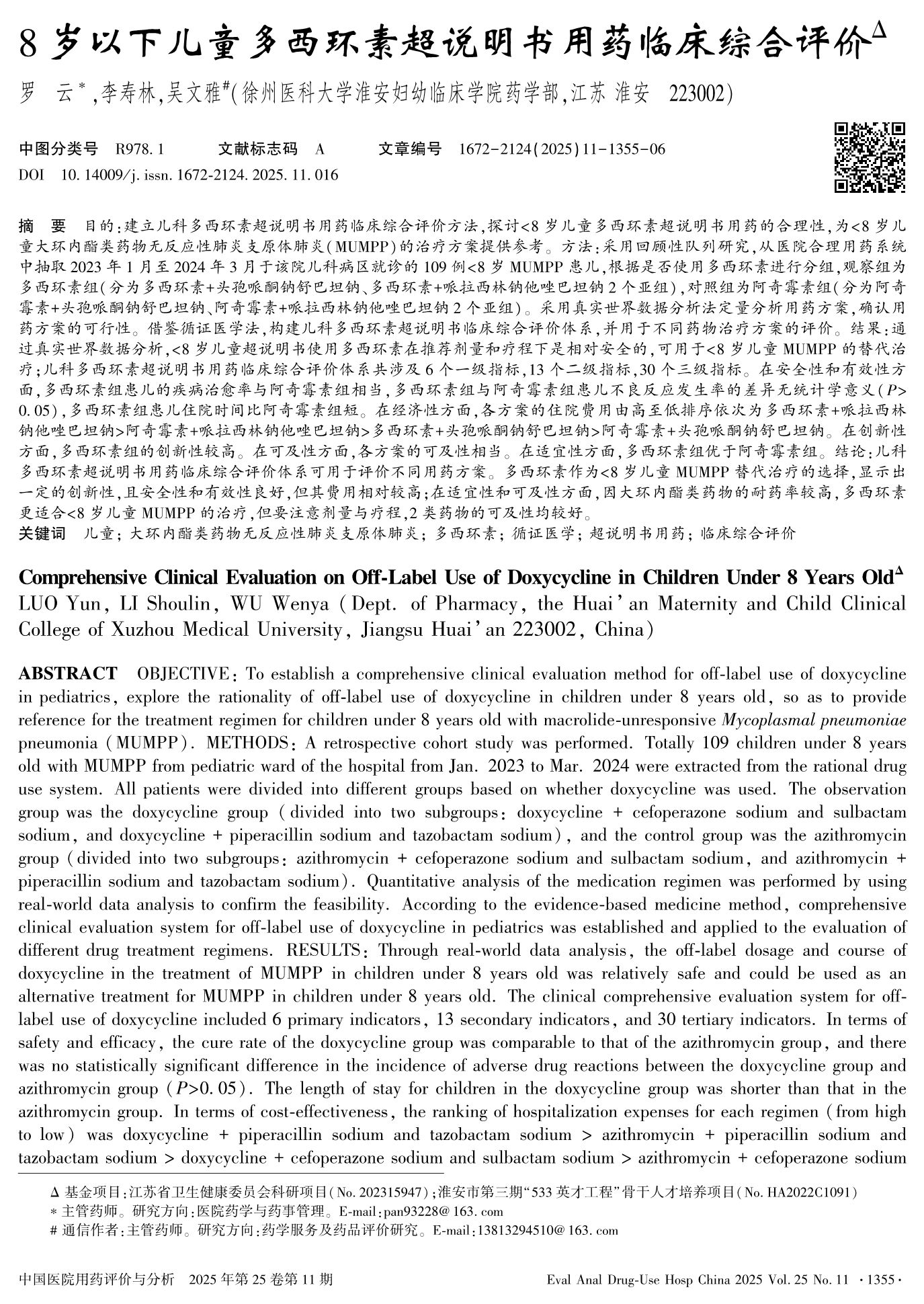 Comprehensive Clinical Evaluation on Off-Label Use of Doxycycline in Children Under 8 Years Old
