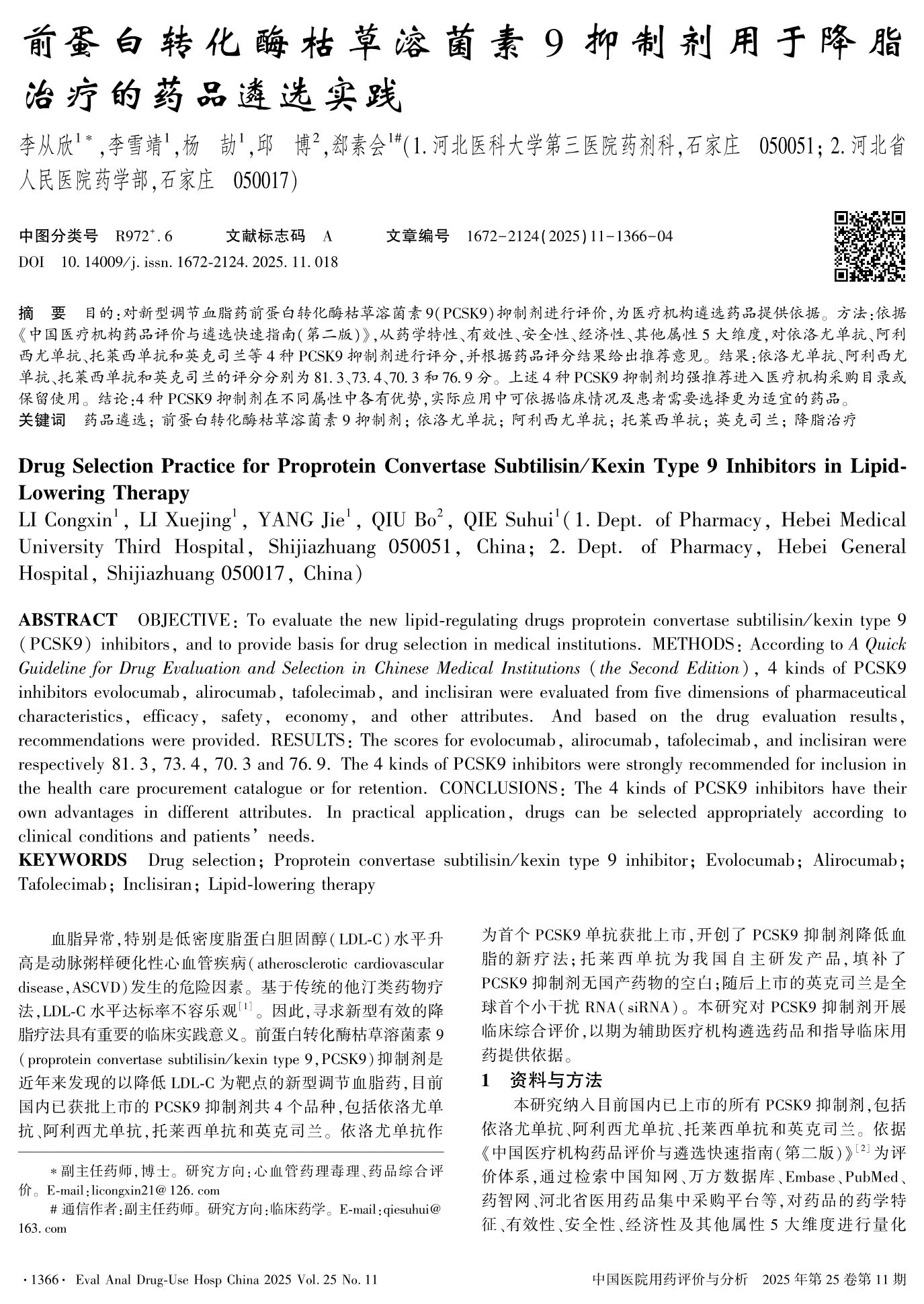 Drug Selection Practice for Proprotein Convertase Subtilisin / Kexin Type 9 Inhibitors in Lipid-Lowering Therapy