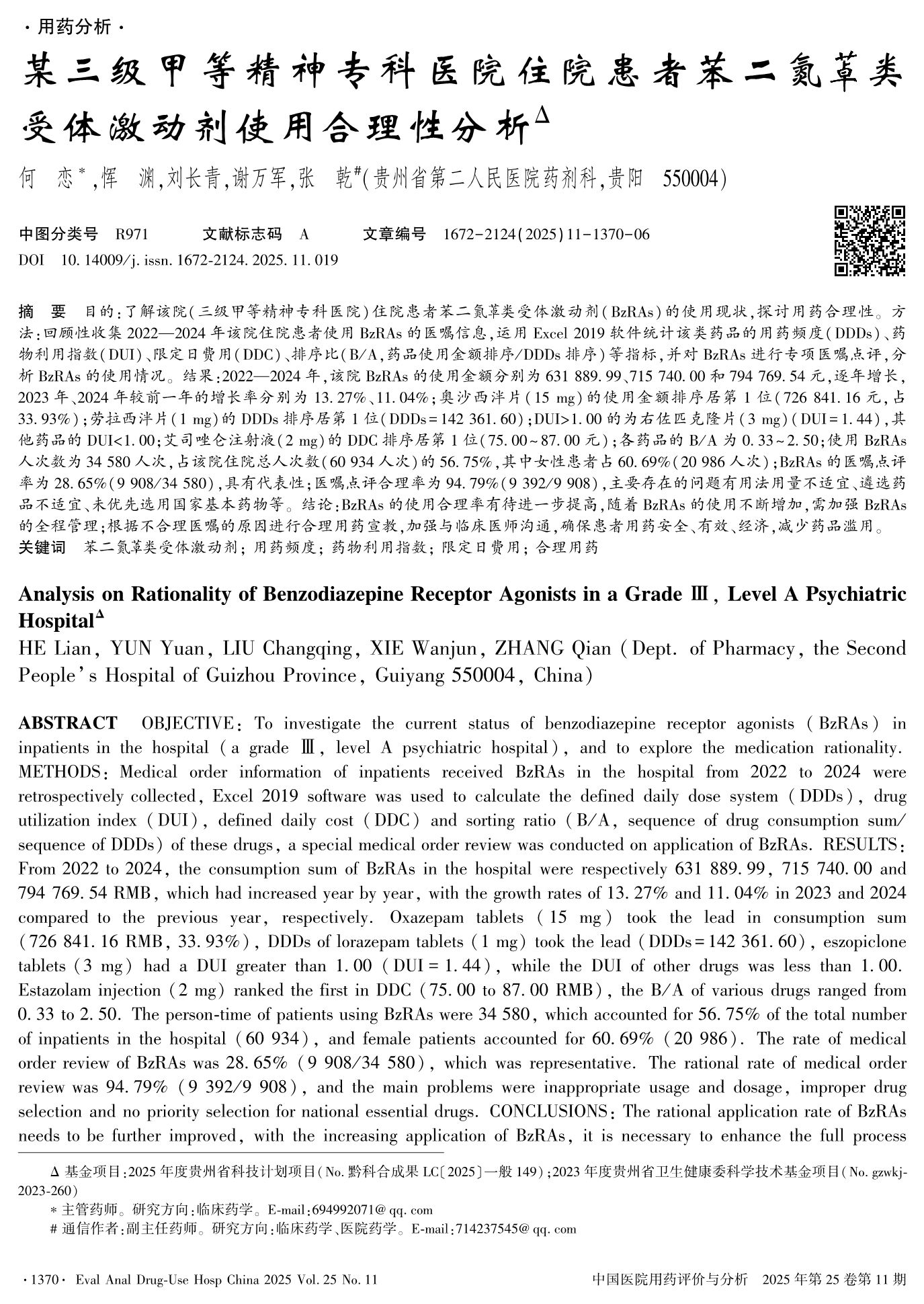 Analysis on Rationality of Benzodiazepine Receptor Agonists in a Grade Ⅲ, Level A Psychiatric Hospital