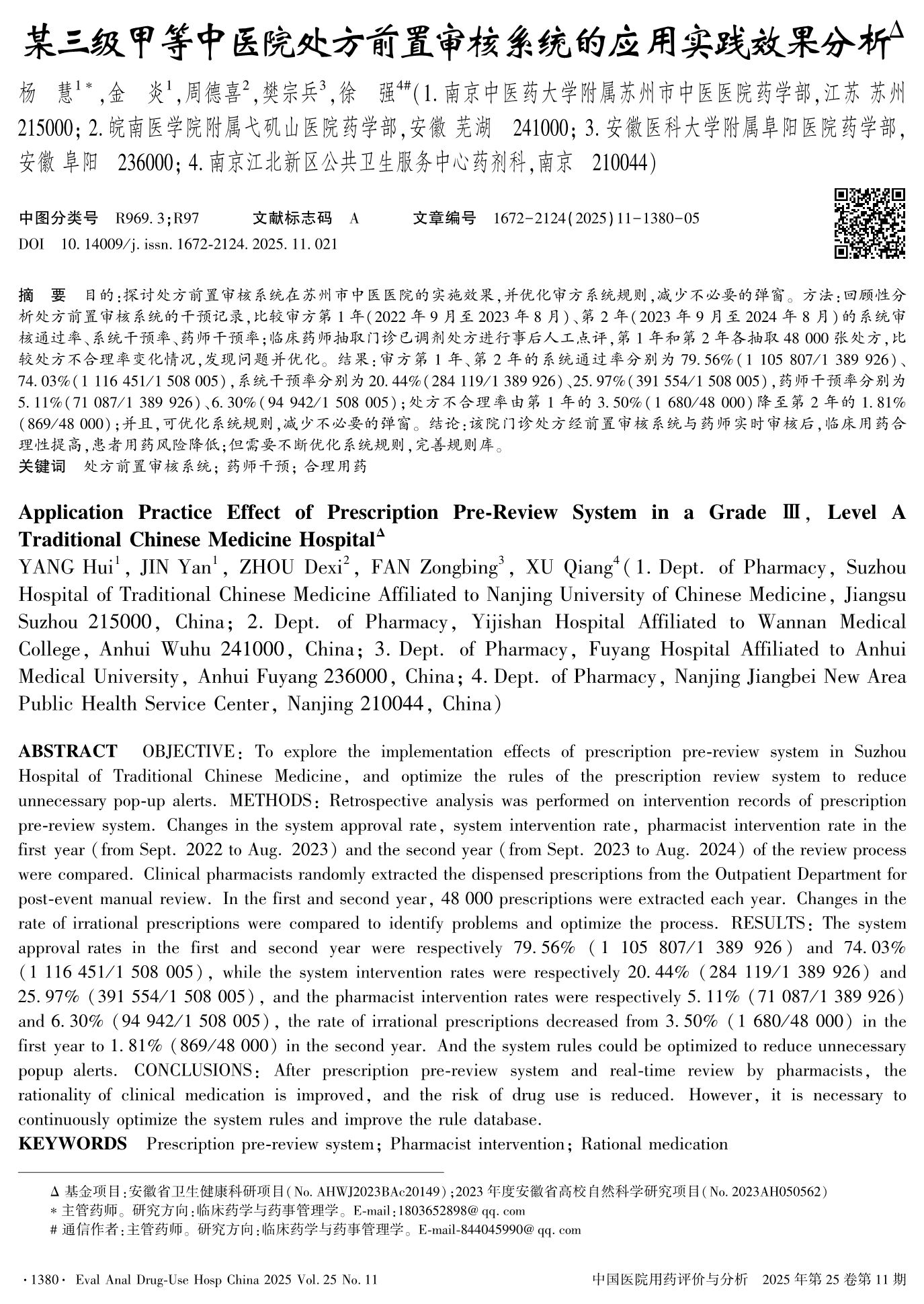 Application Practice Effect of Prescription Pre-Review System in a Grade Ⅲ, Level A Traditional Chinese Medicine Hospital