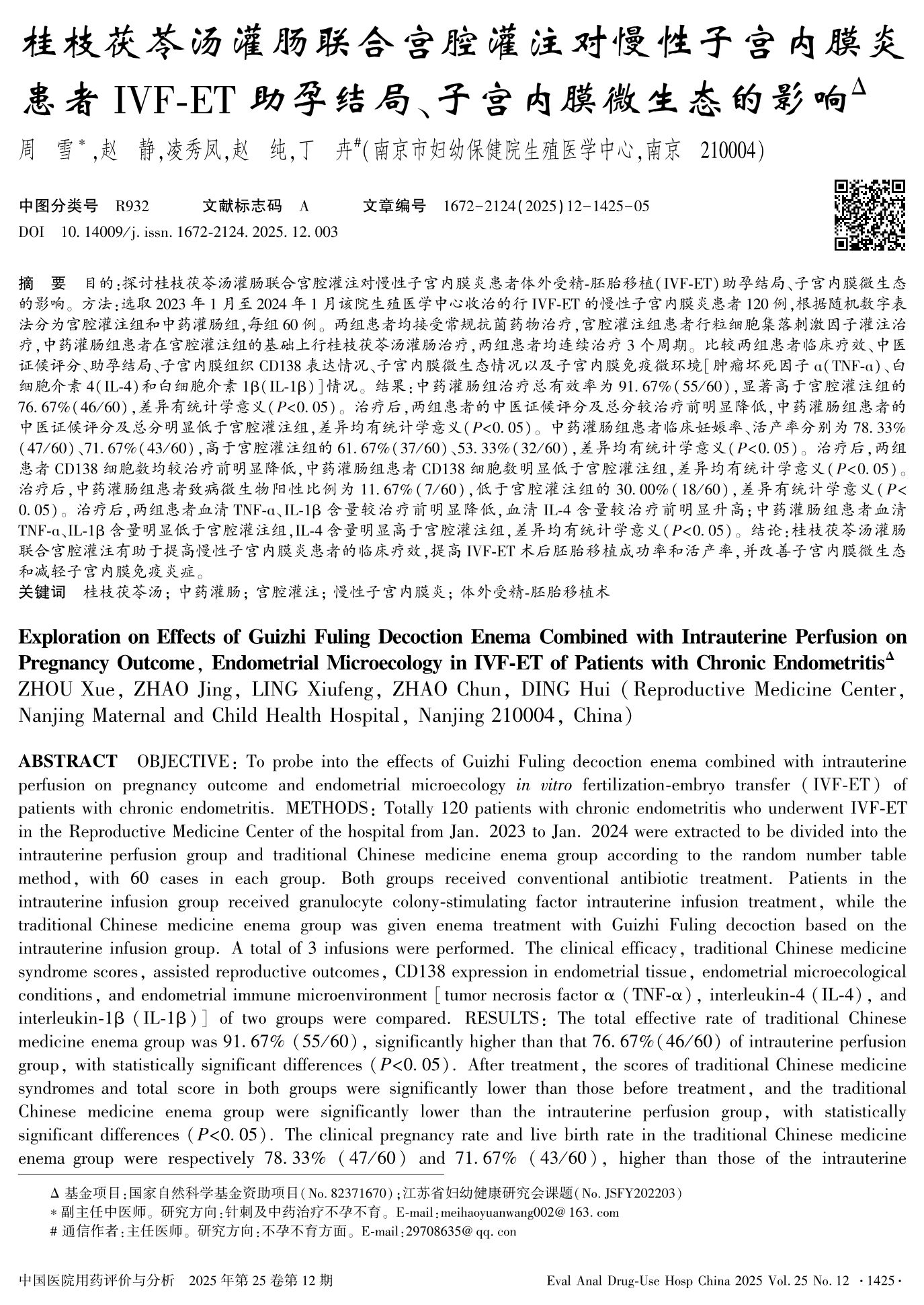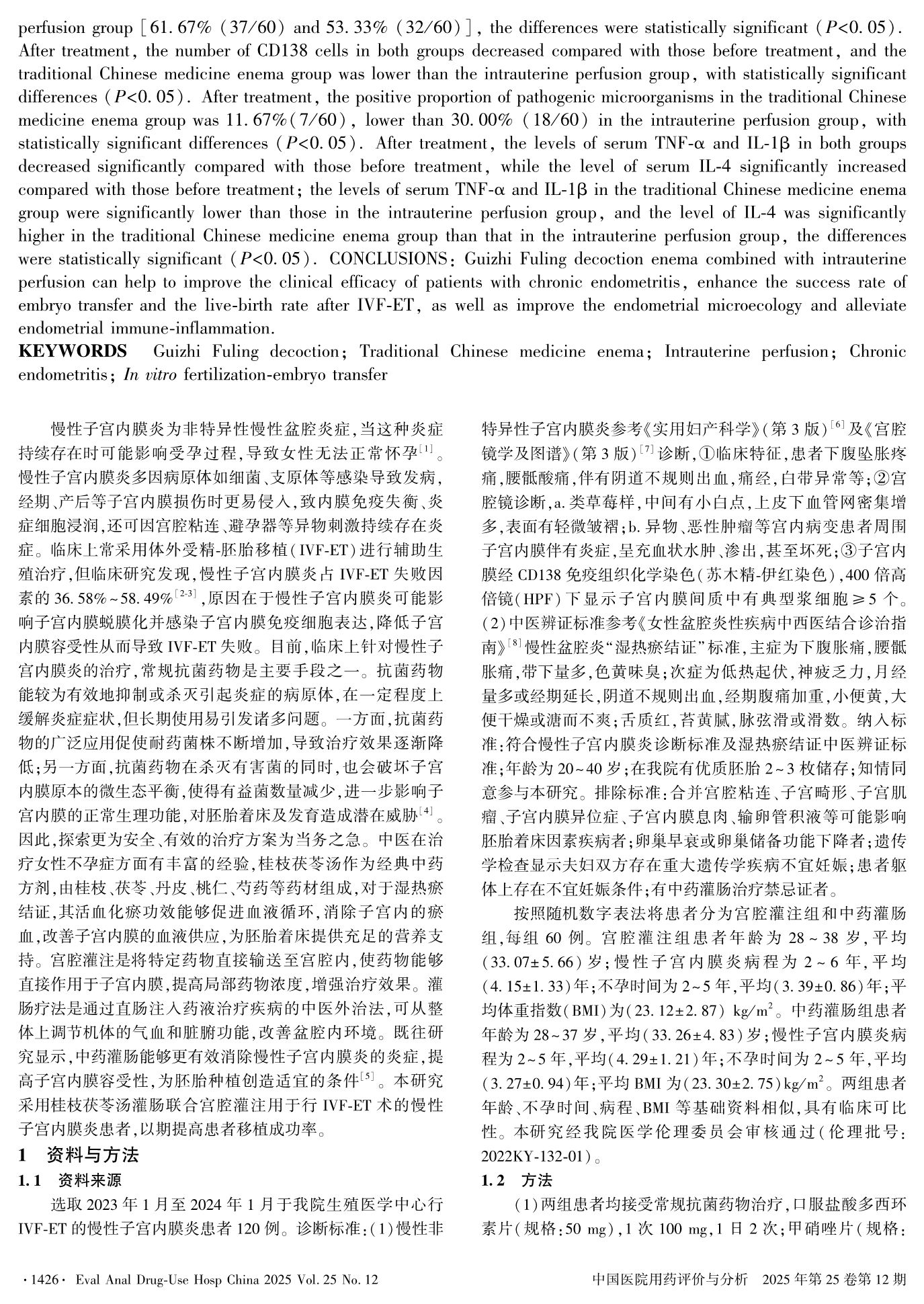 Exploration on Effects of Guizhi Fuling Decoction Enema Combined with Intrauterine Perfusion on Pregnancy Outcome, Endometrial Microecology in IVF-ET of Patients with Chronic Endometritis