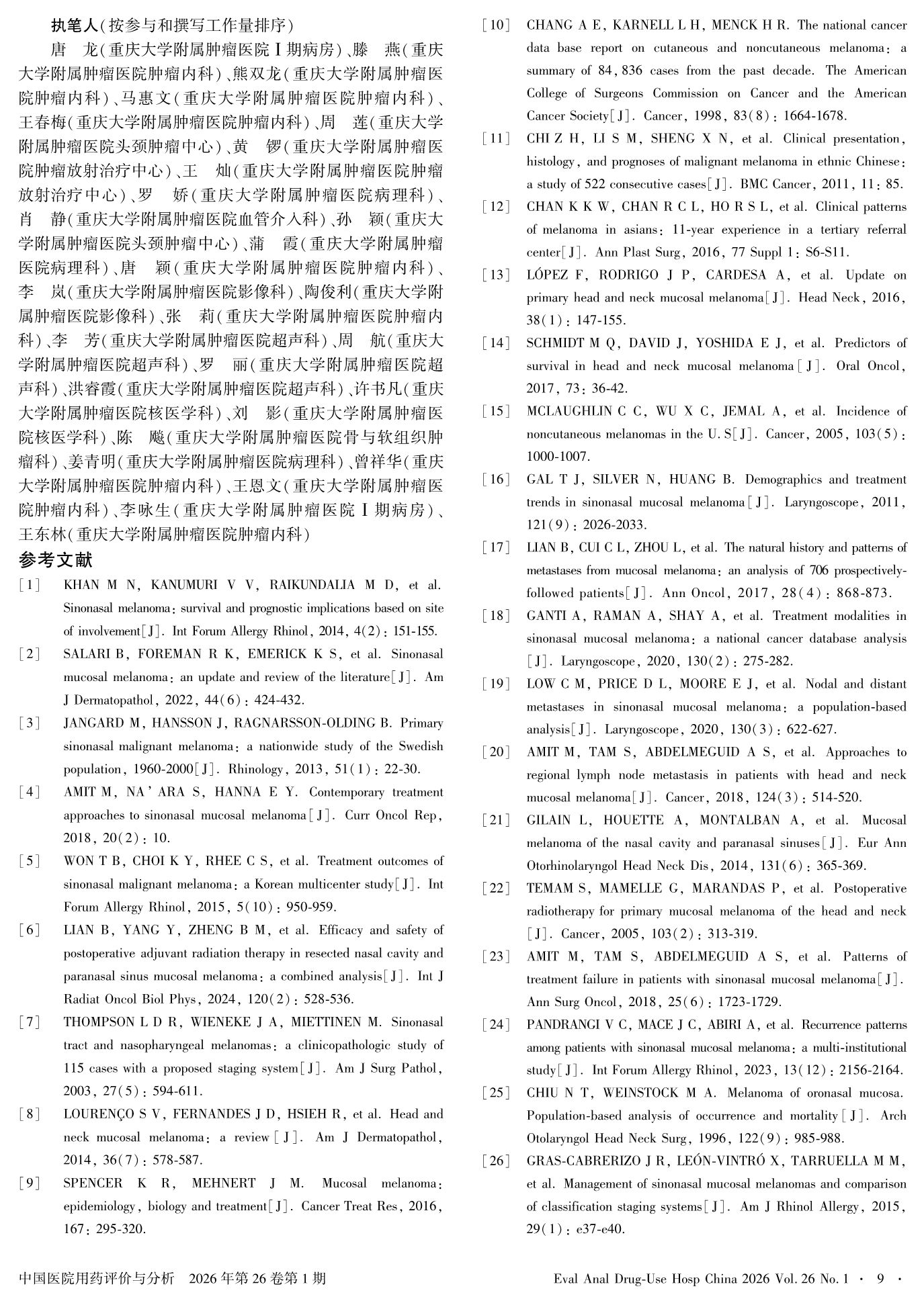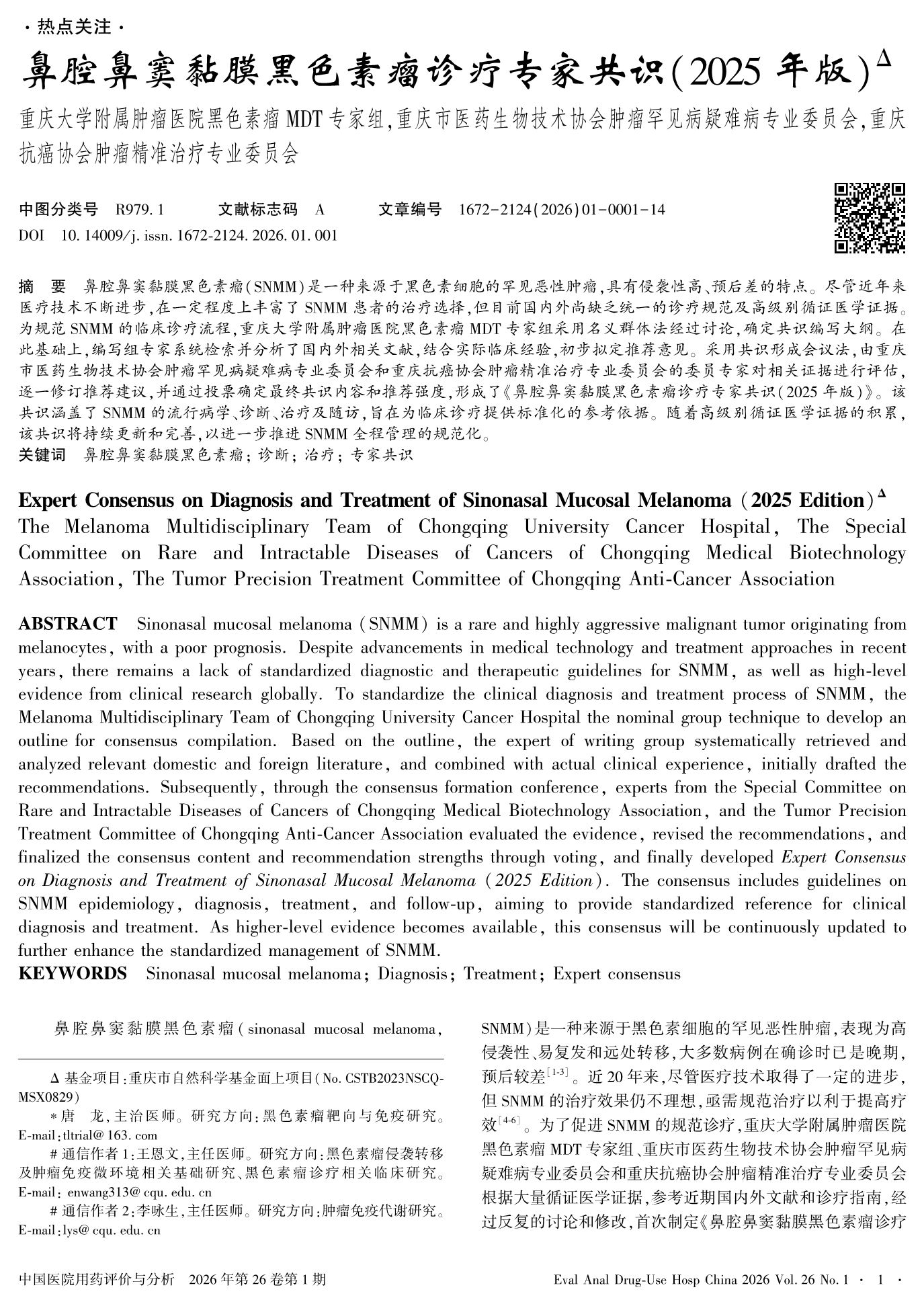 鼻腔鼻窦黏膜黑色素瘤诊疗专家共识(2025年版)
