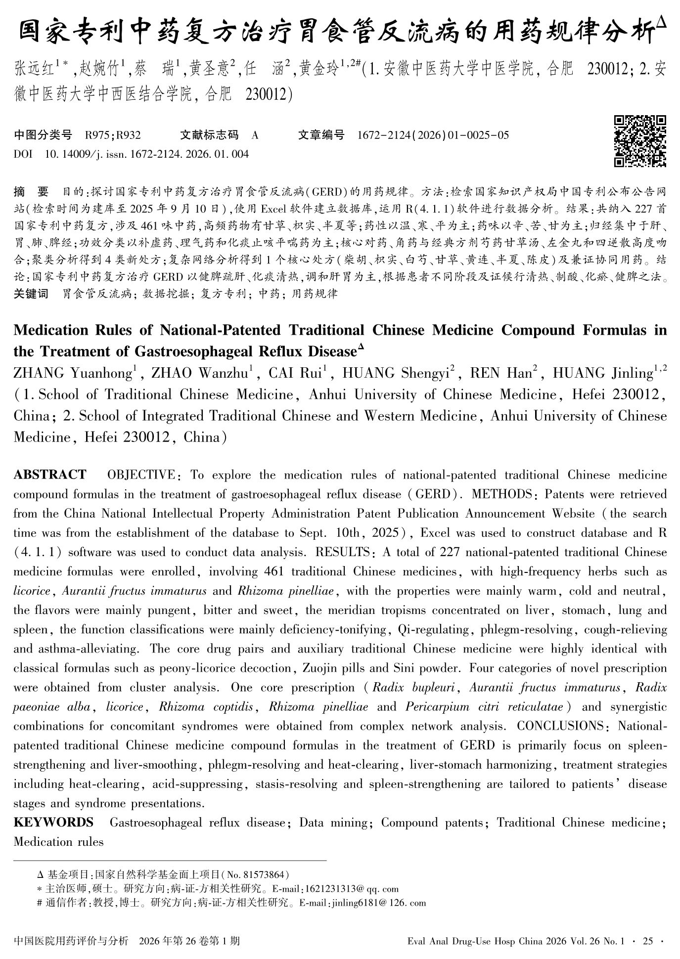 Medication Rules of National-Patented Traditional Chinese Medicine Compound Formulas in the Treatment of Gastroesophageal Reflux Disease