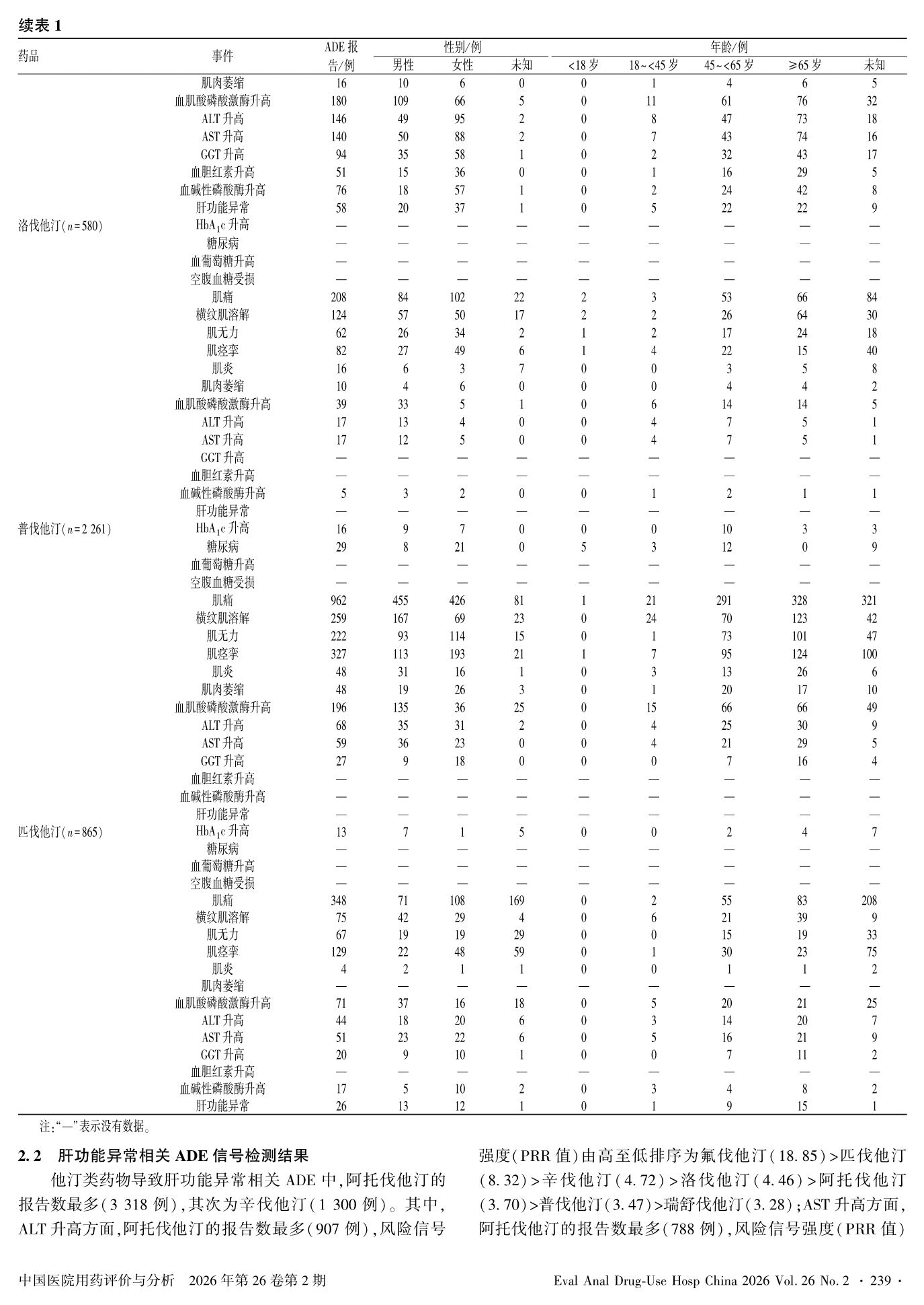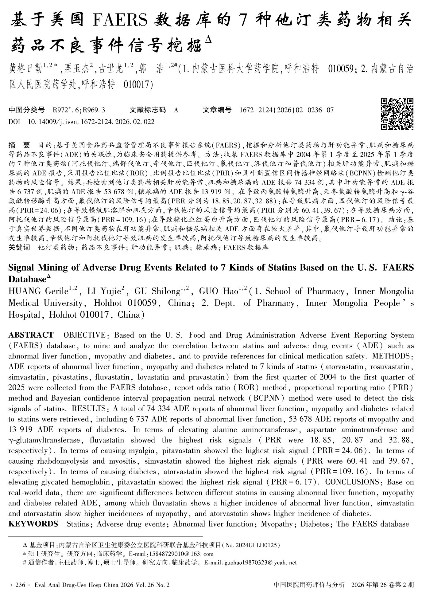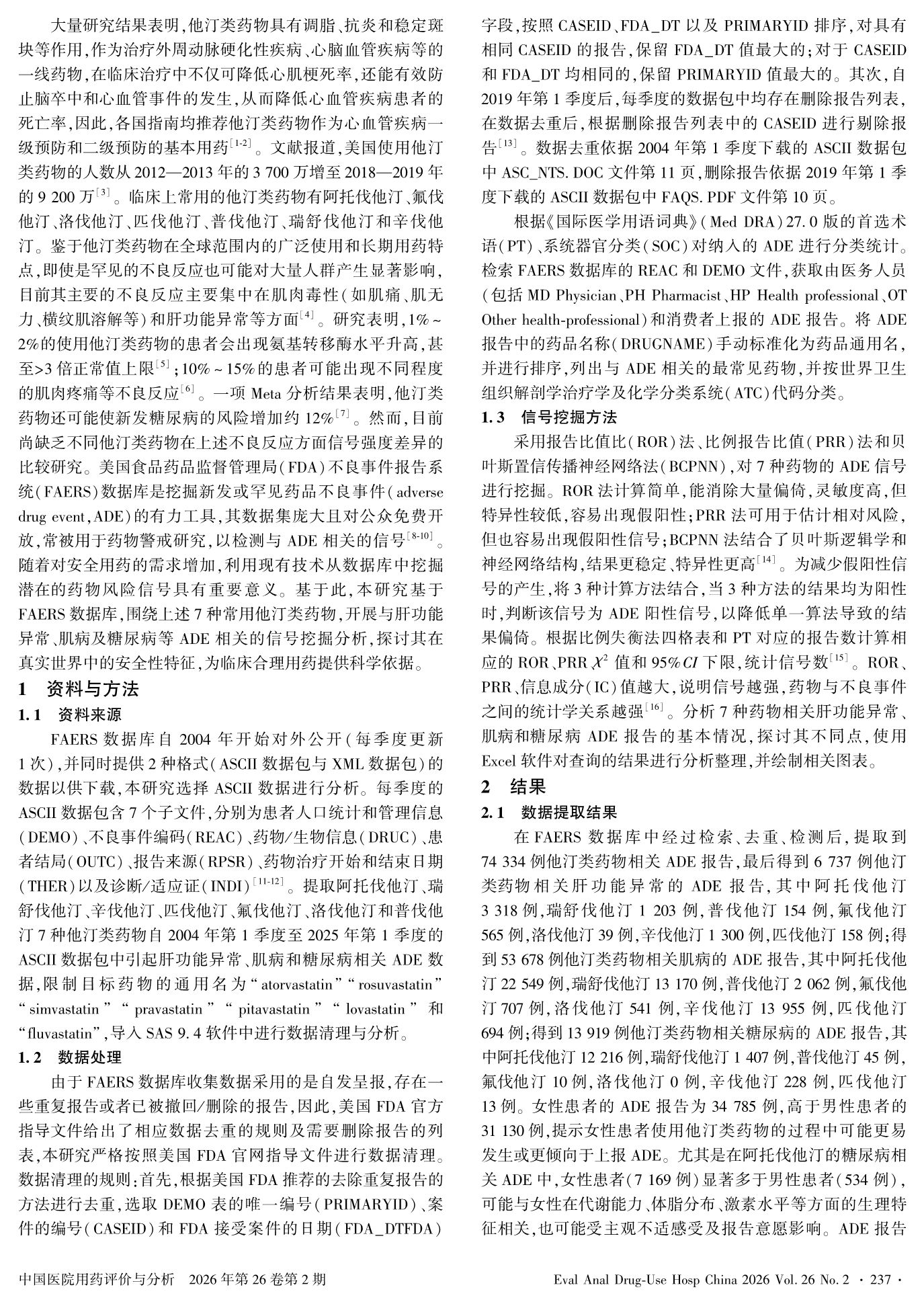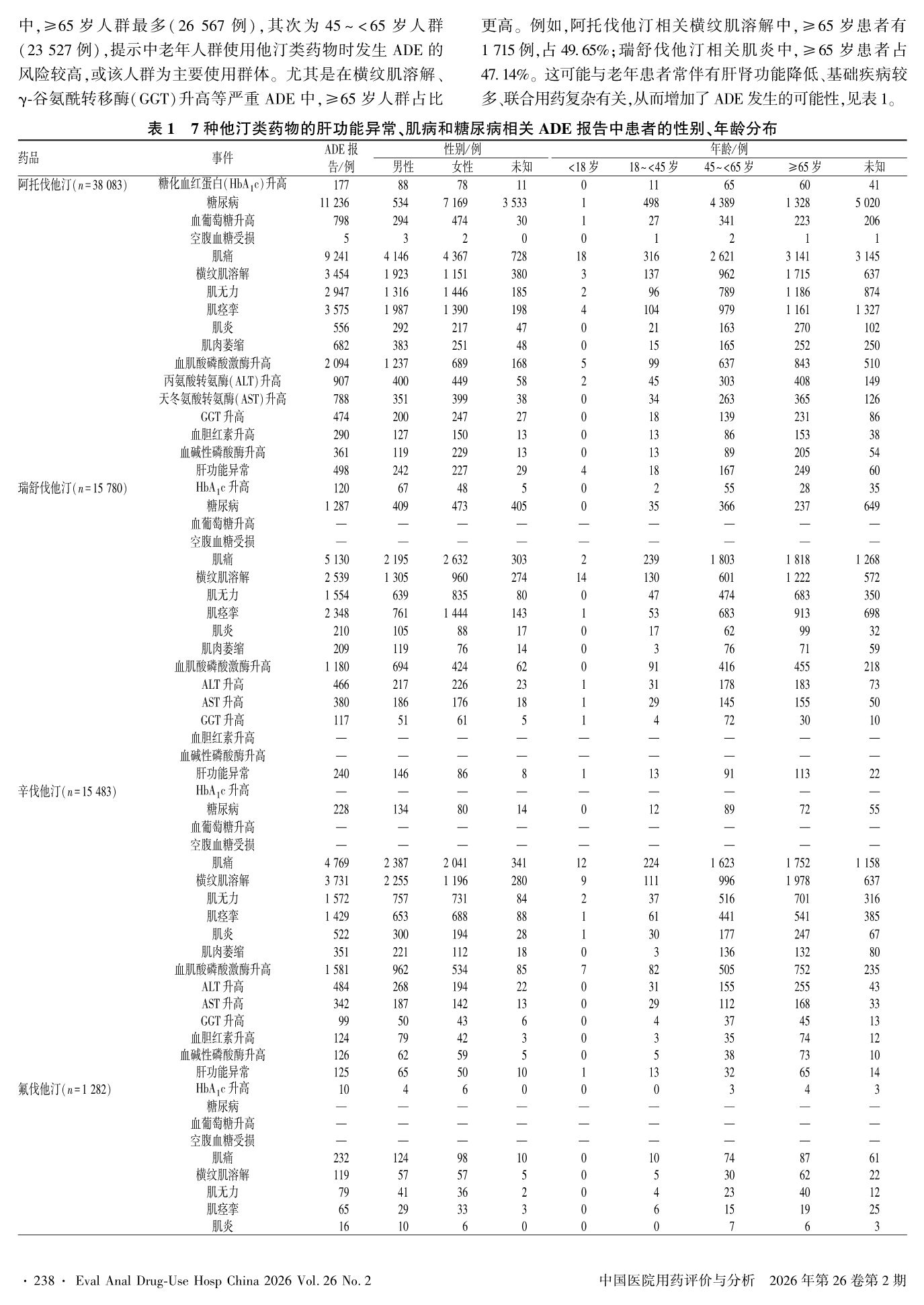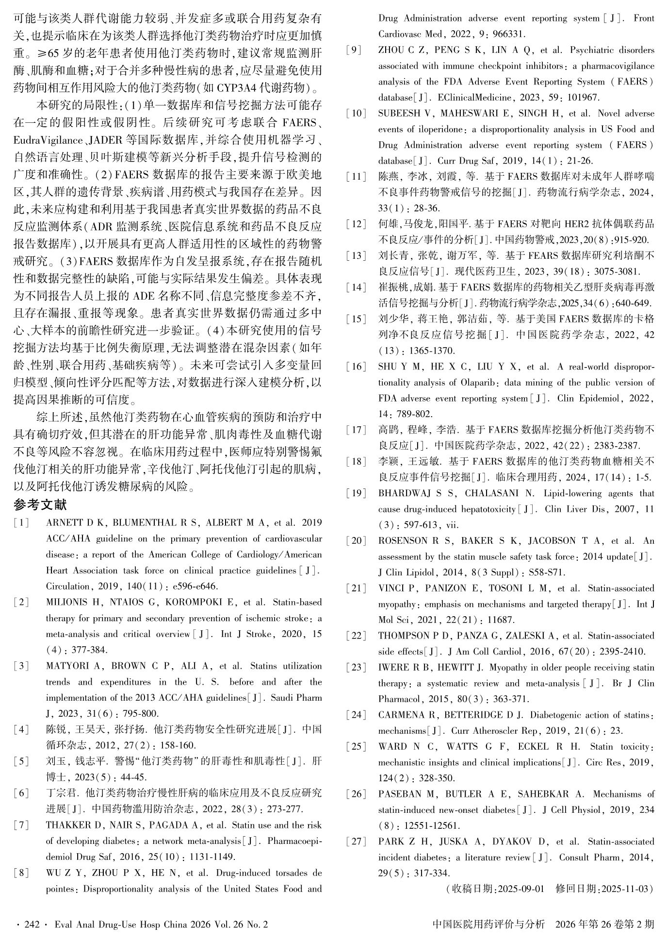 基于美国FAERS数据库的7种他汀类药物相关药品不良事件信号挖掘