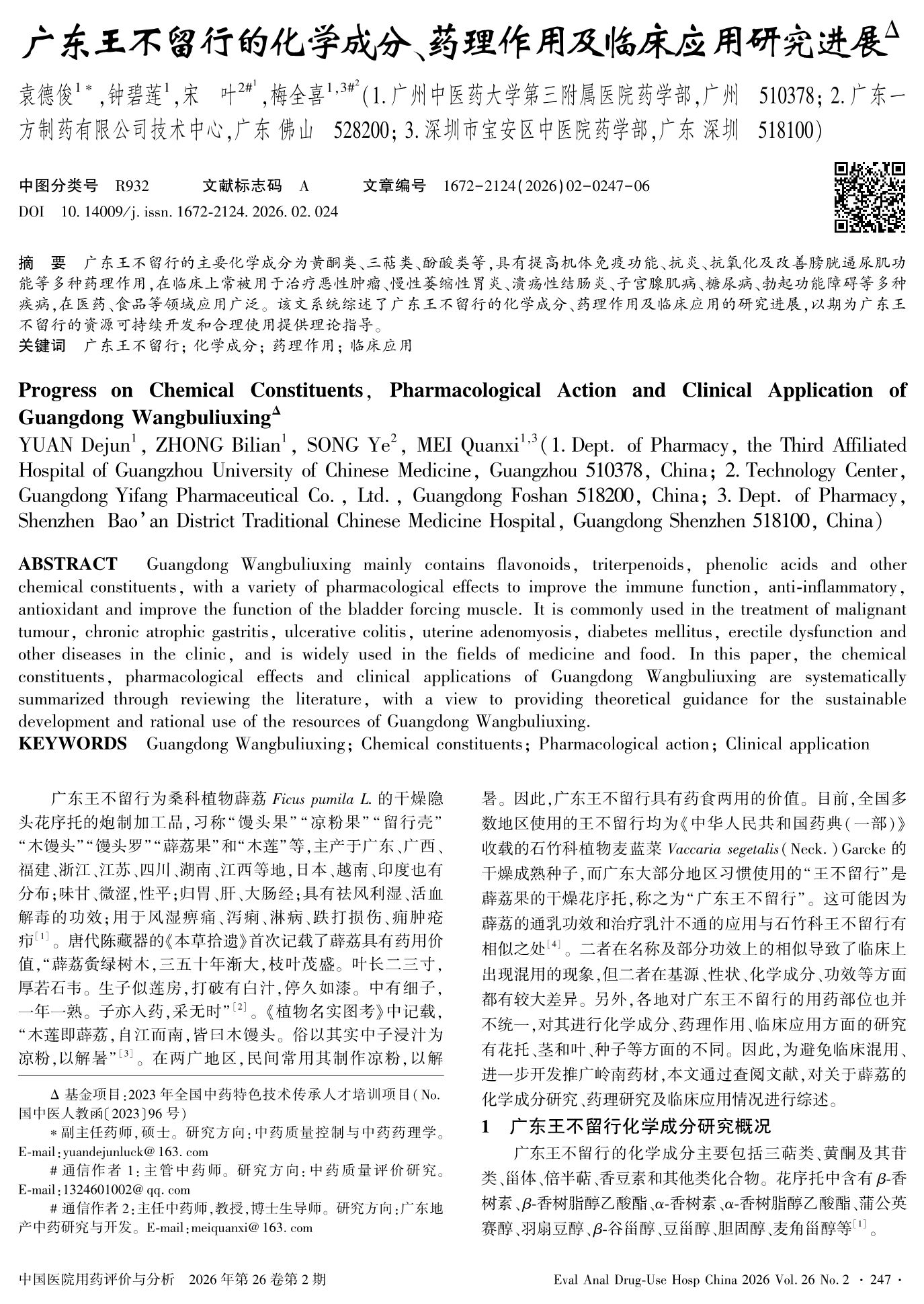 广东王不留行的化学成分、药理作用及临床应用研究进展