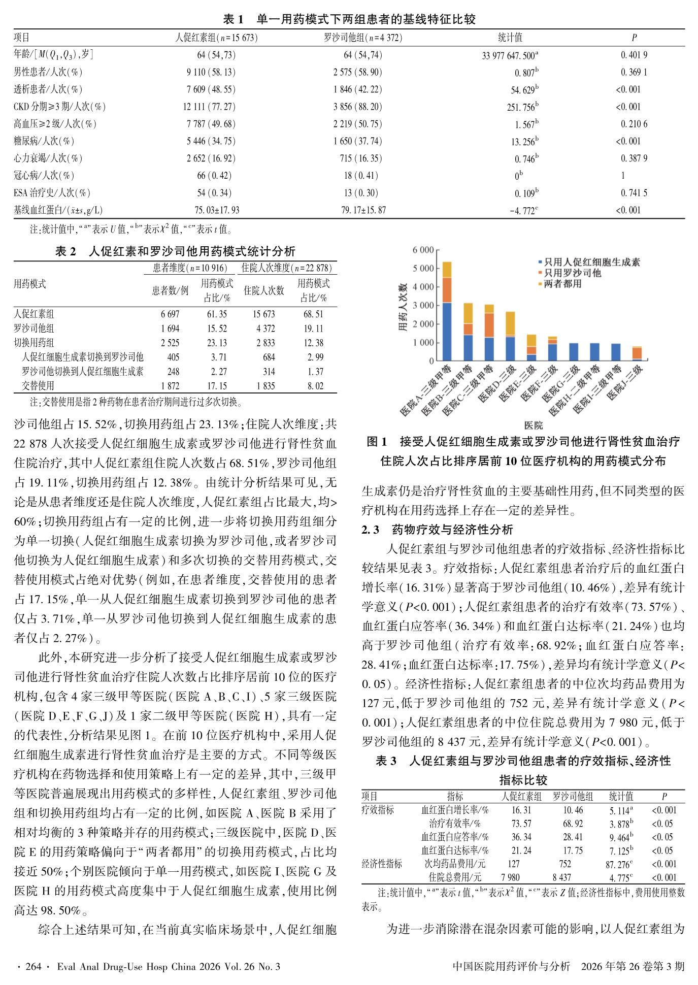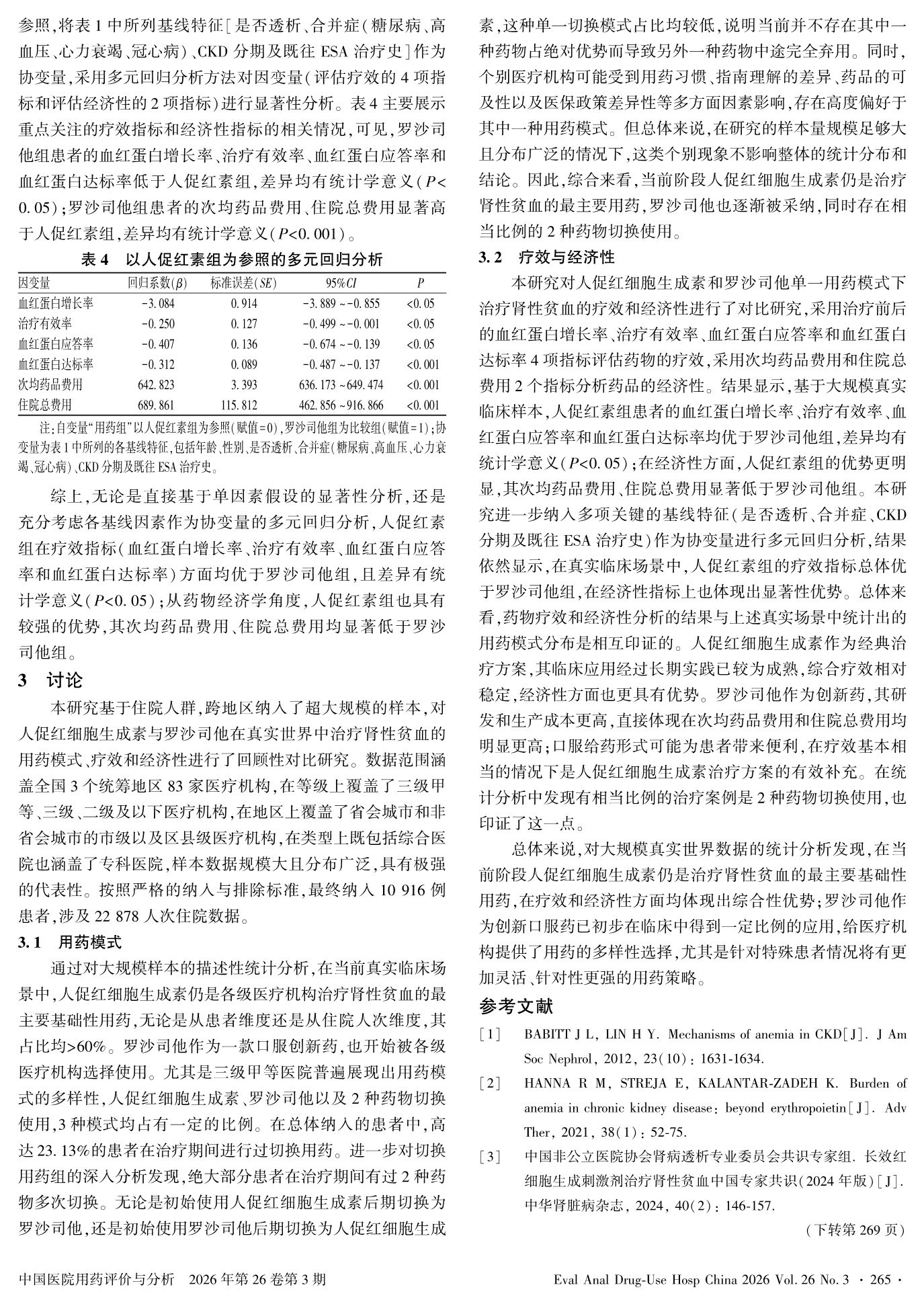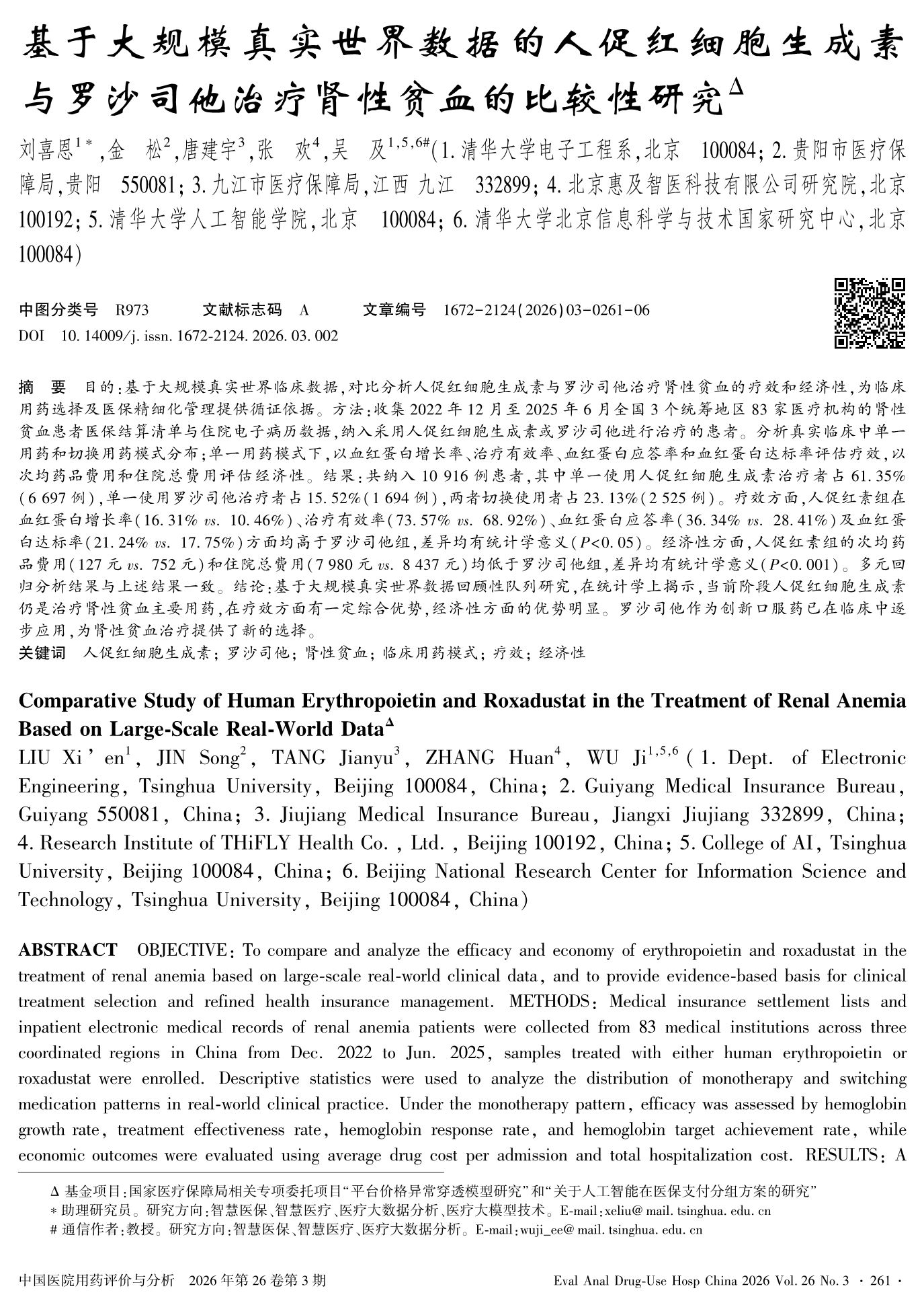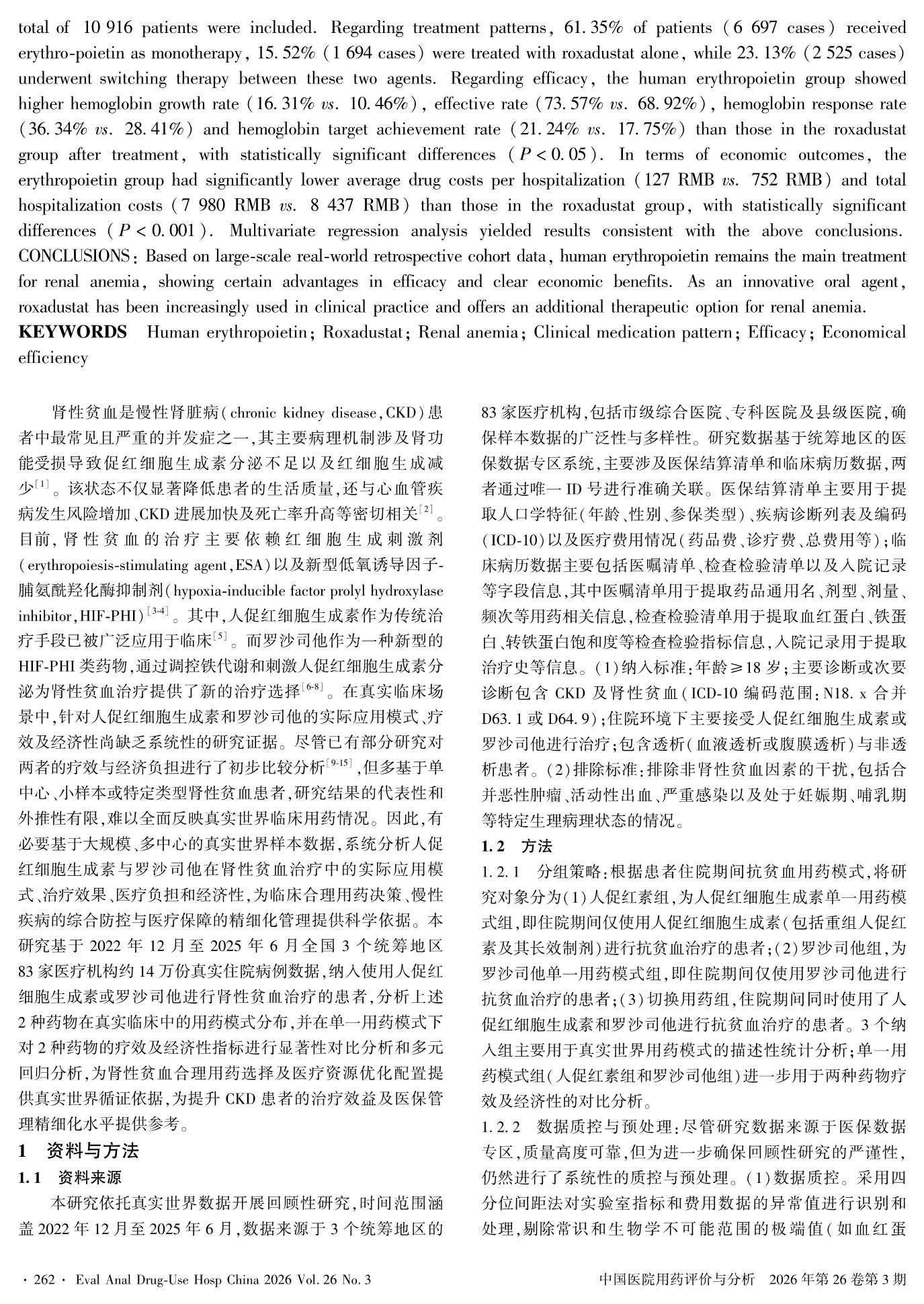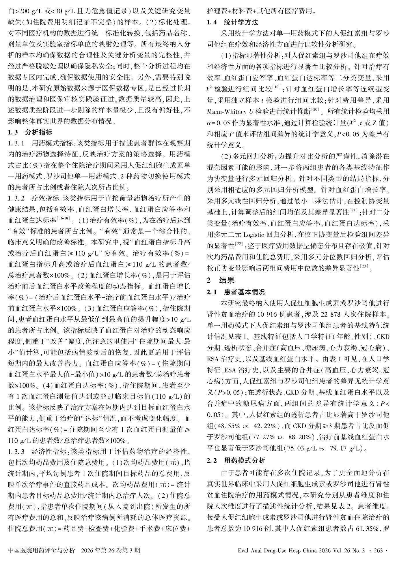 基于大规模真实世界数据的人促红细胞生成素与罗沙司他治疗肾性贫血的比较性研究