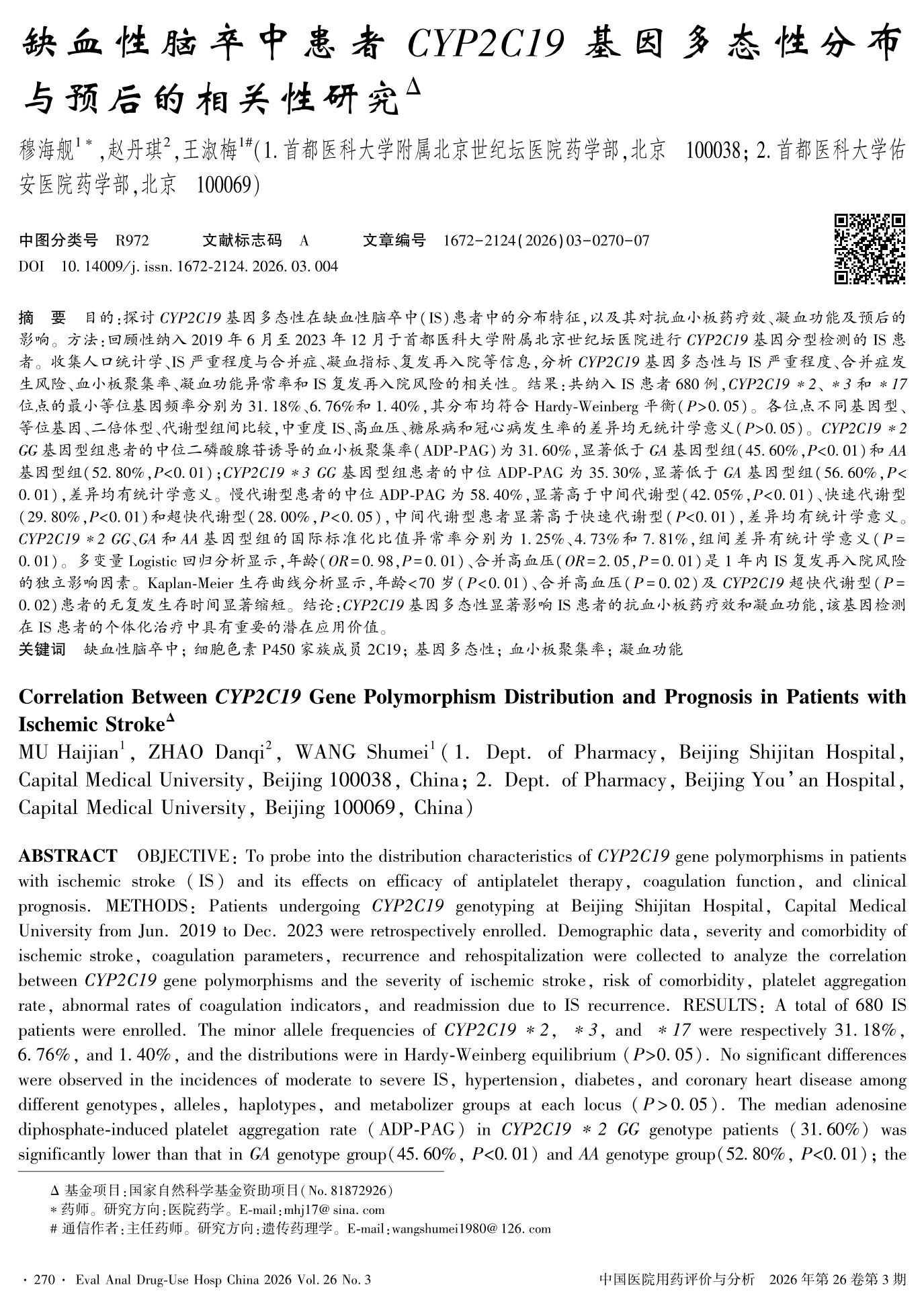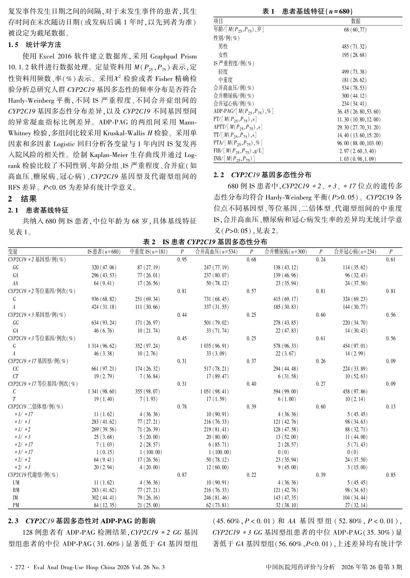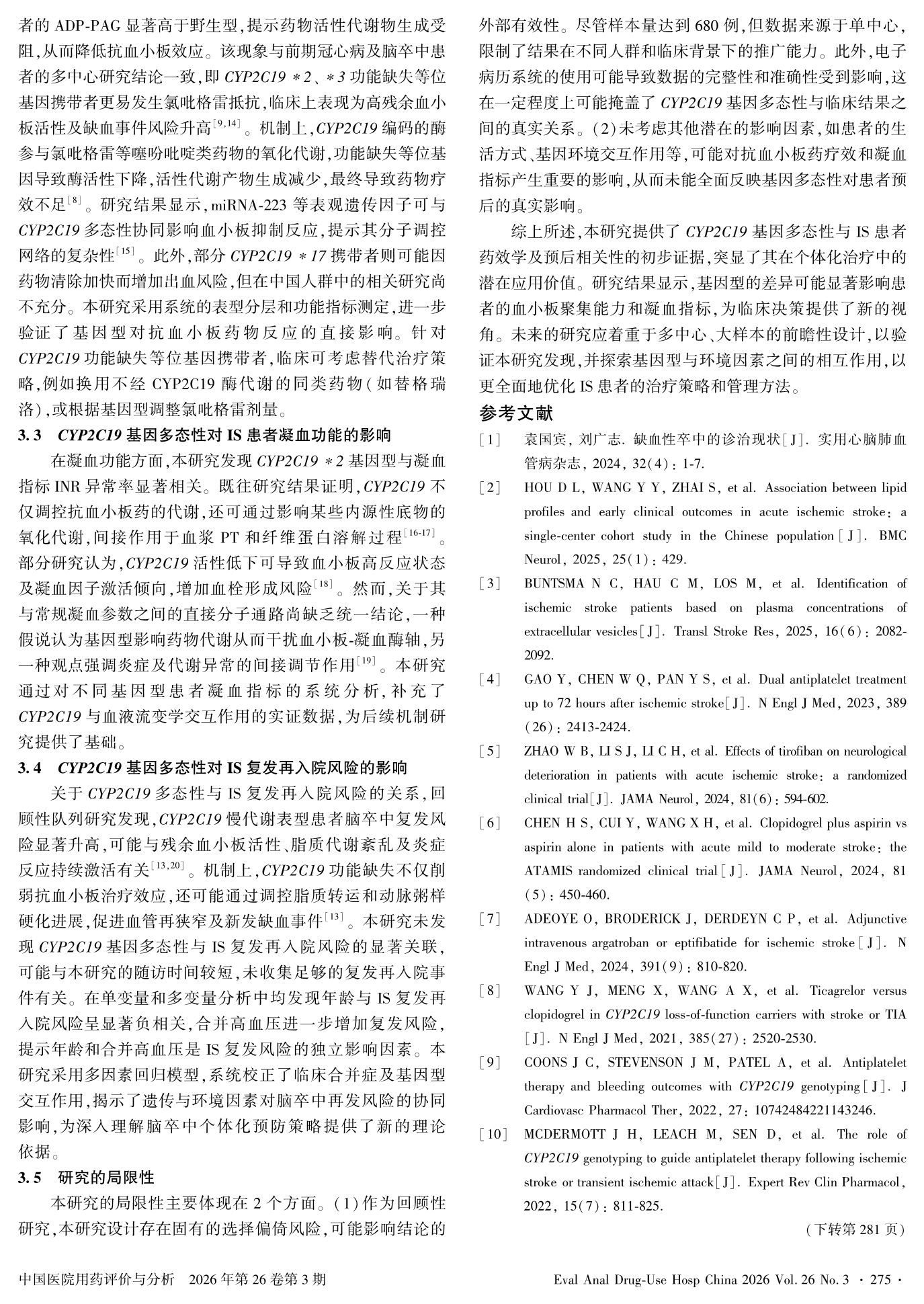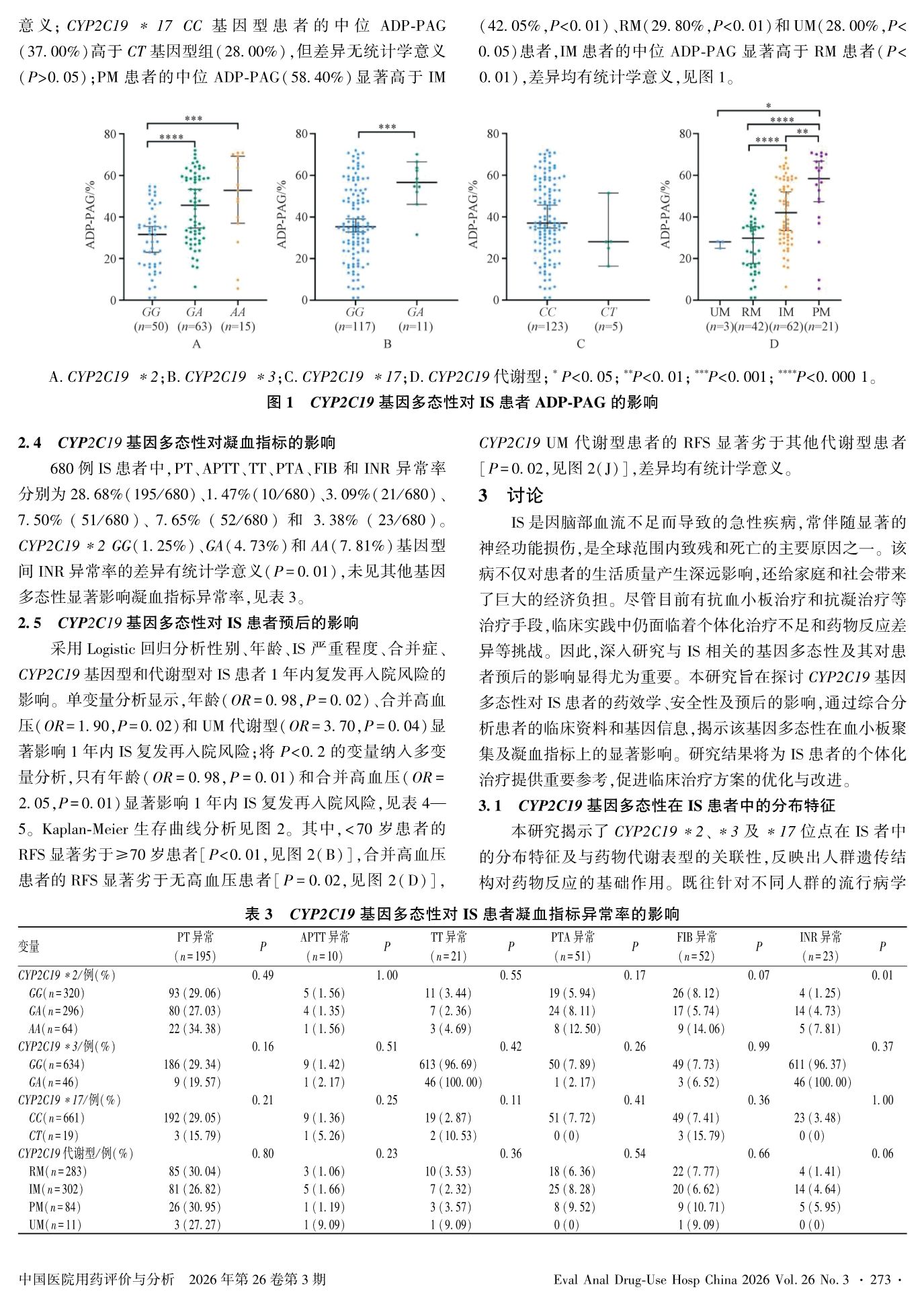 缺血性脑卒中患者CYP2C19基因多态性分布与预后的相关性研究