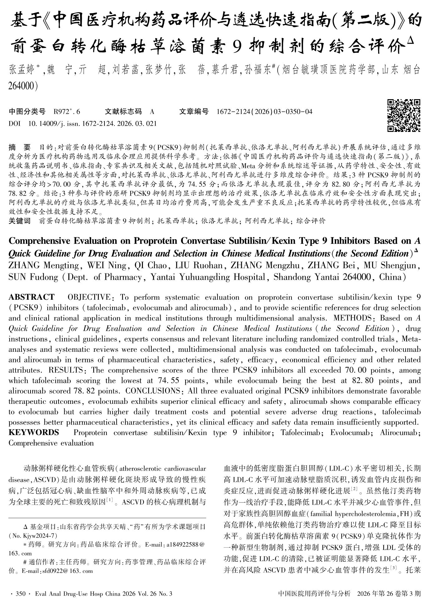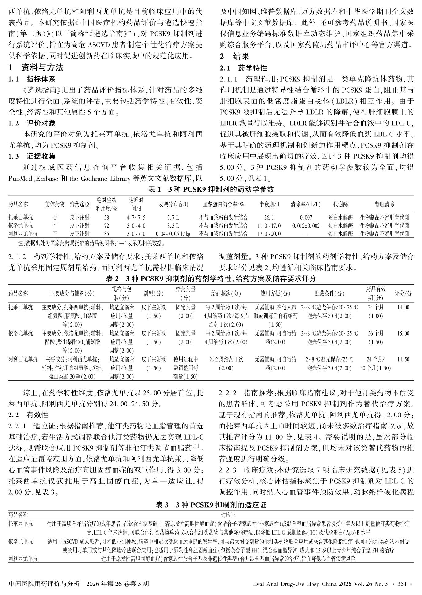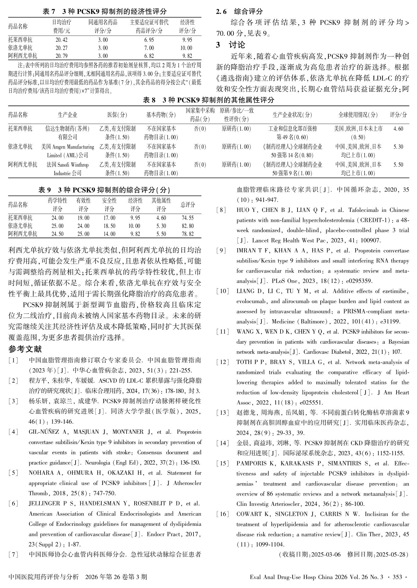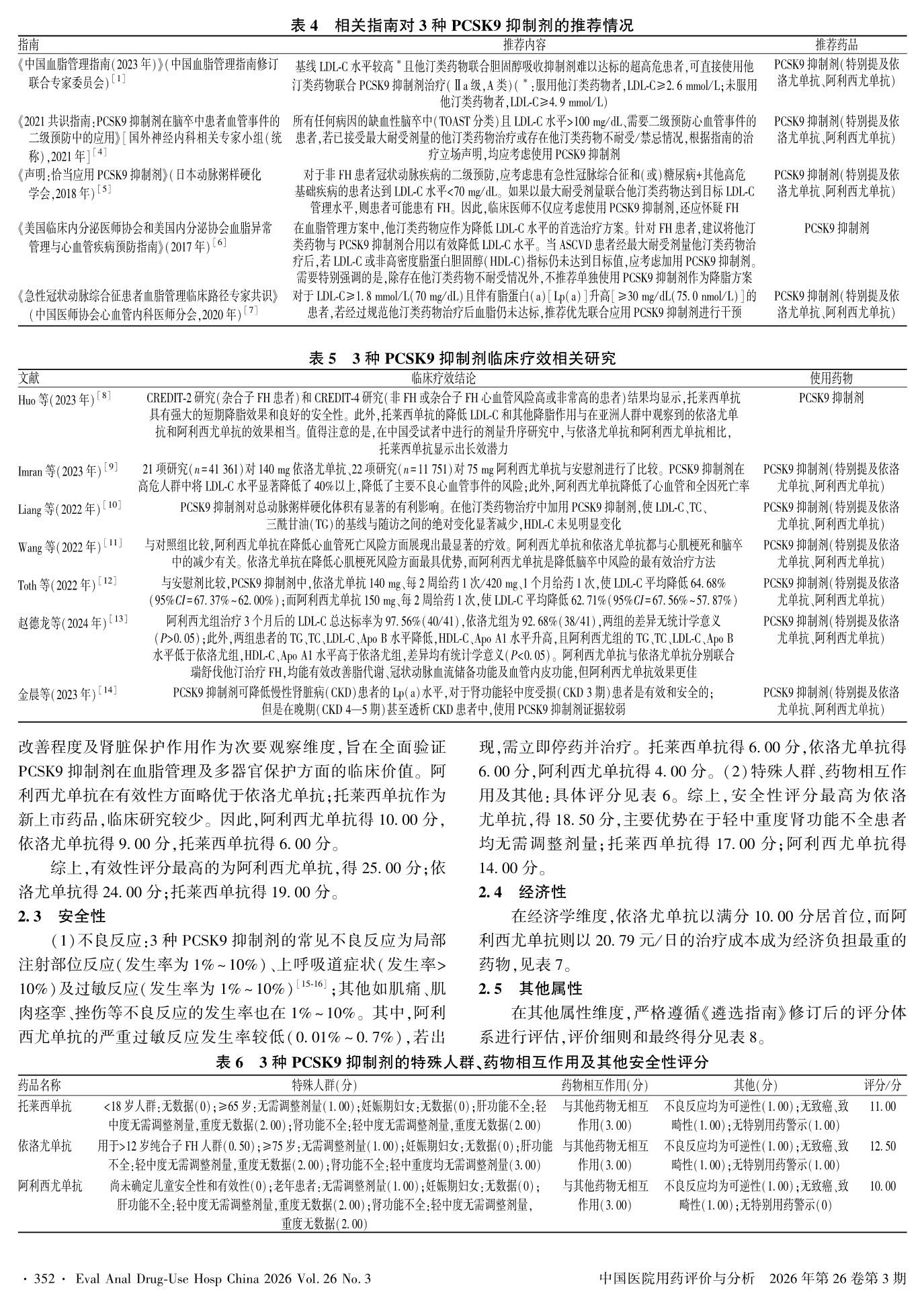 基于《中国医疗机构药品评价与遴选快速指南(第二版)》的前蛋白转化酶枯草溶菌素9抑制剂的综合评价