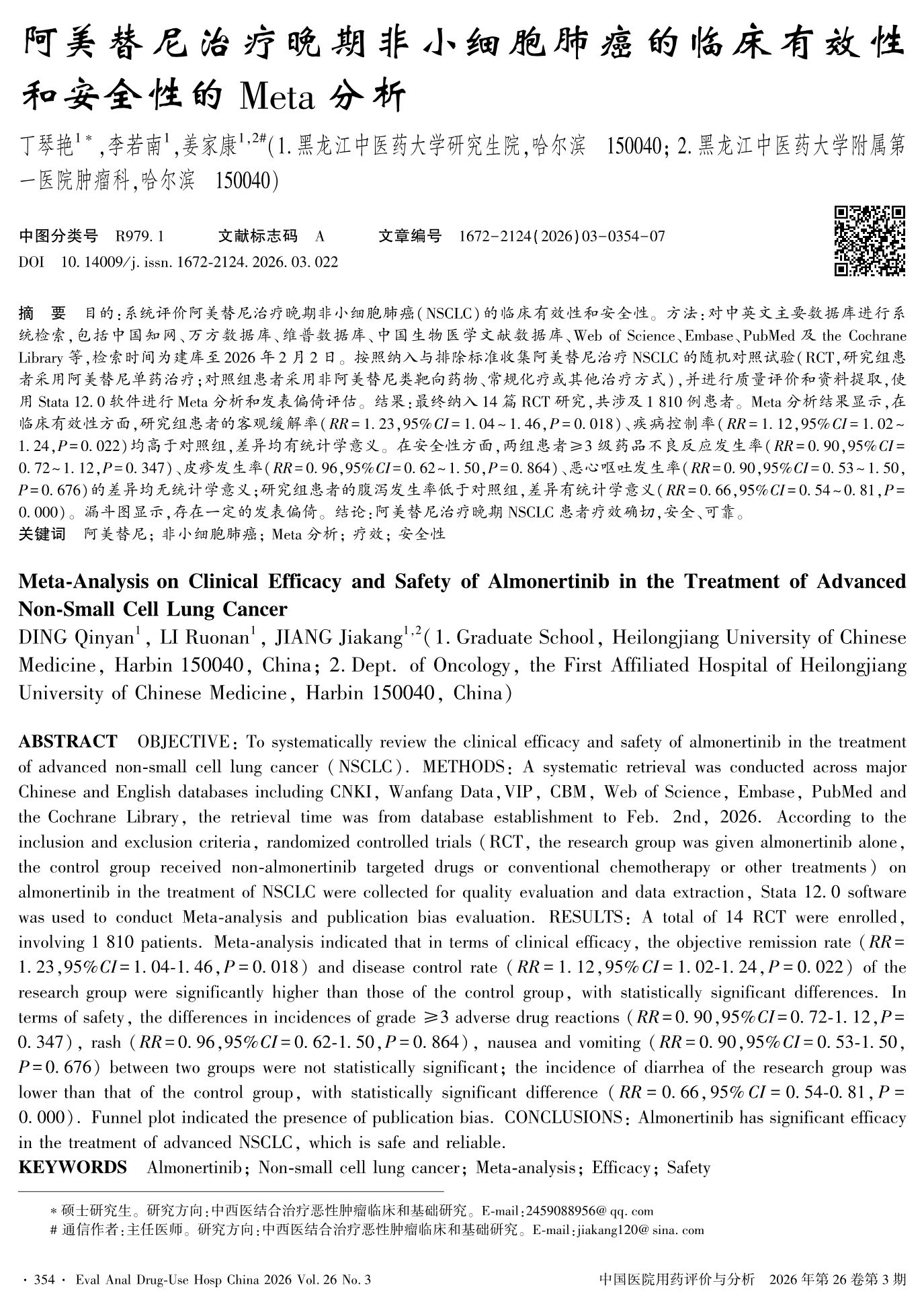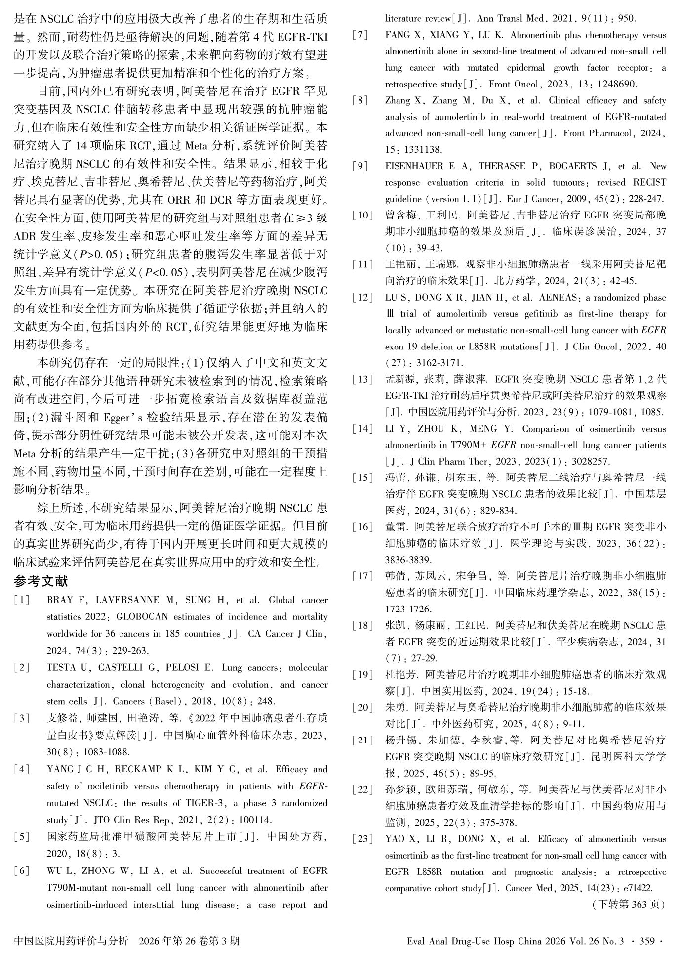 阿美替尼治疗晚期非小细胞肺癌的临床有效性和安全性的Meta分析
