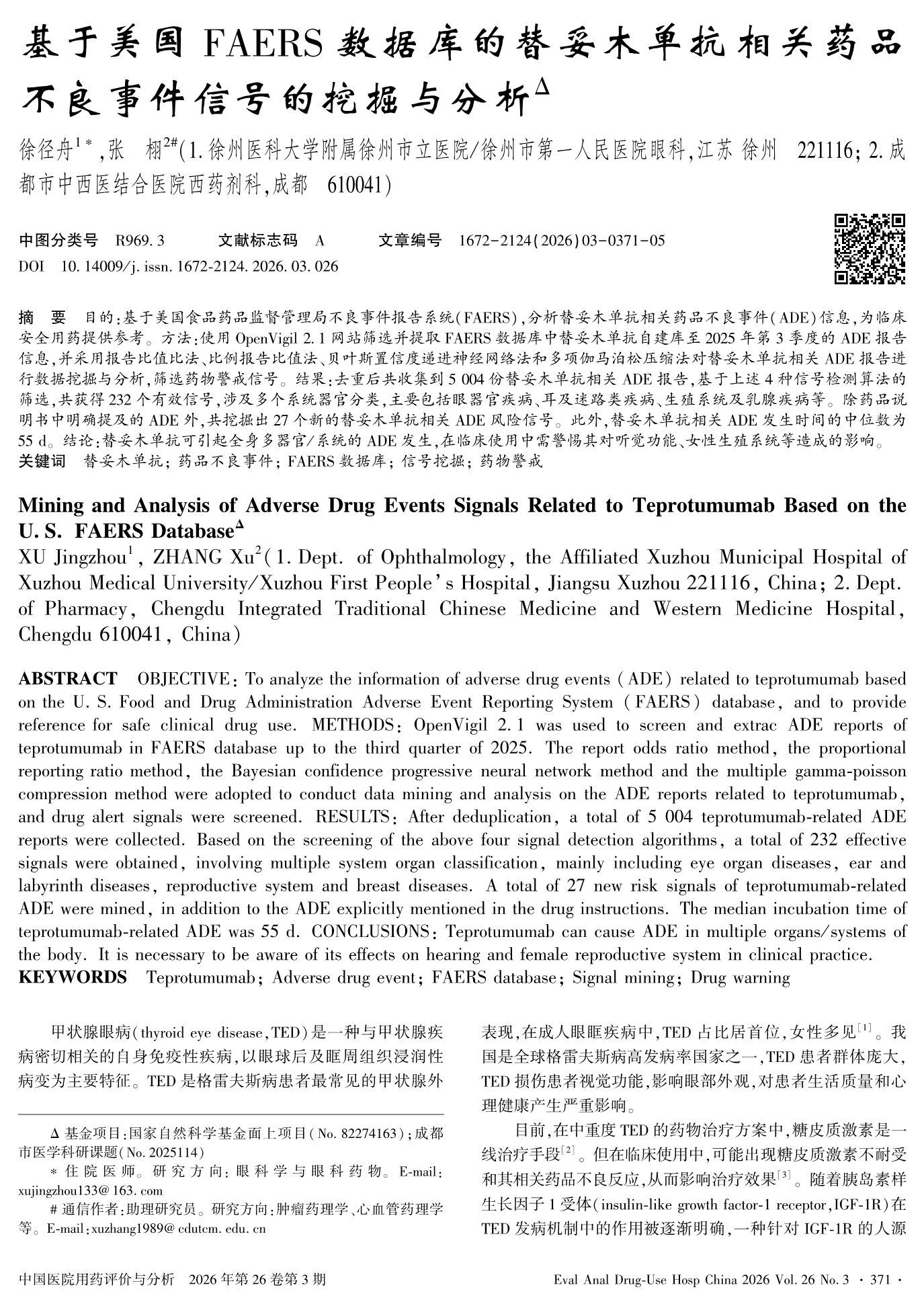 基于美国FAERS数据库的替妥木单抗相关药品不良事件信号的挖掘与分析