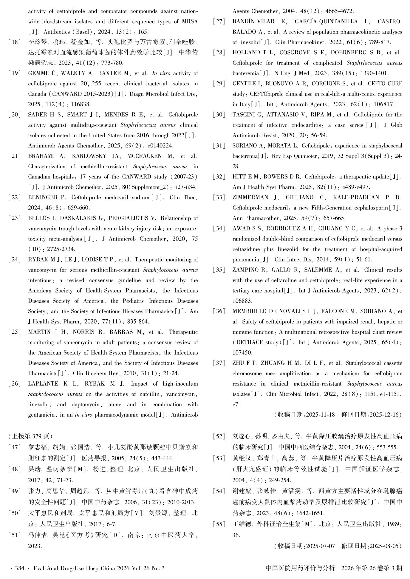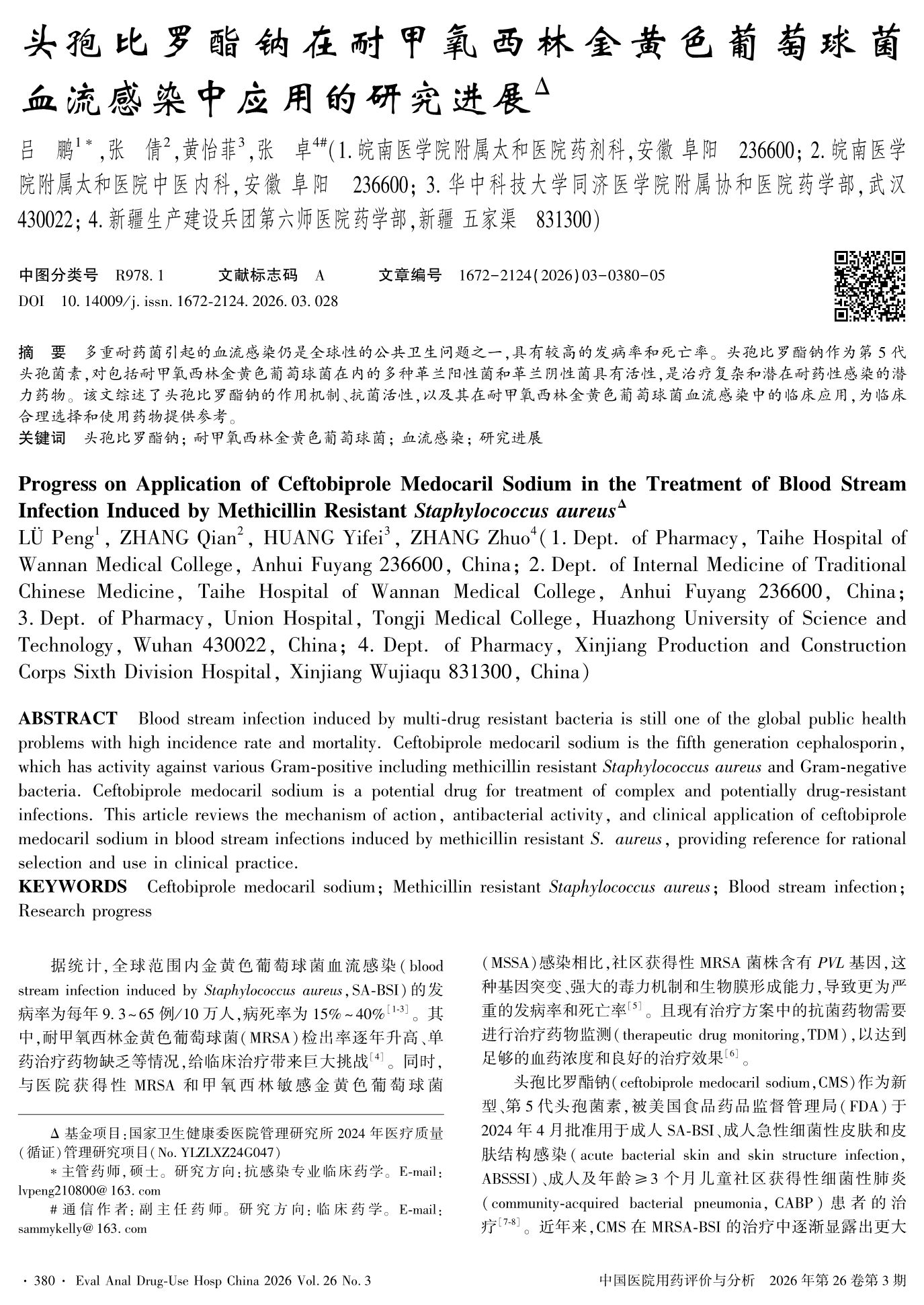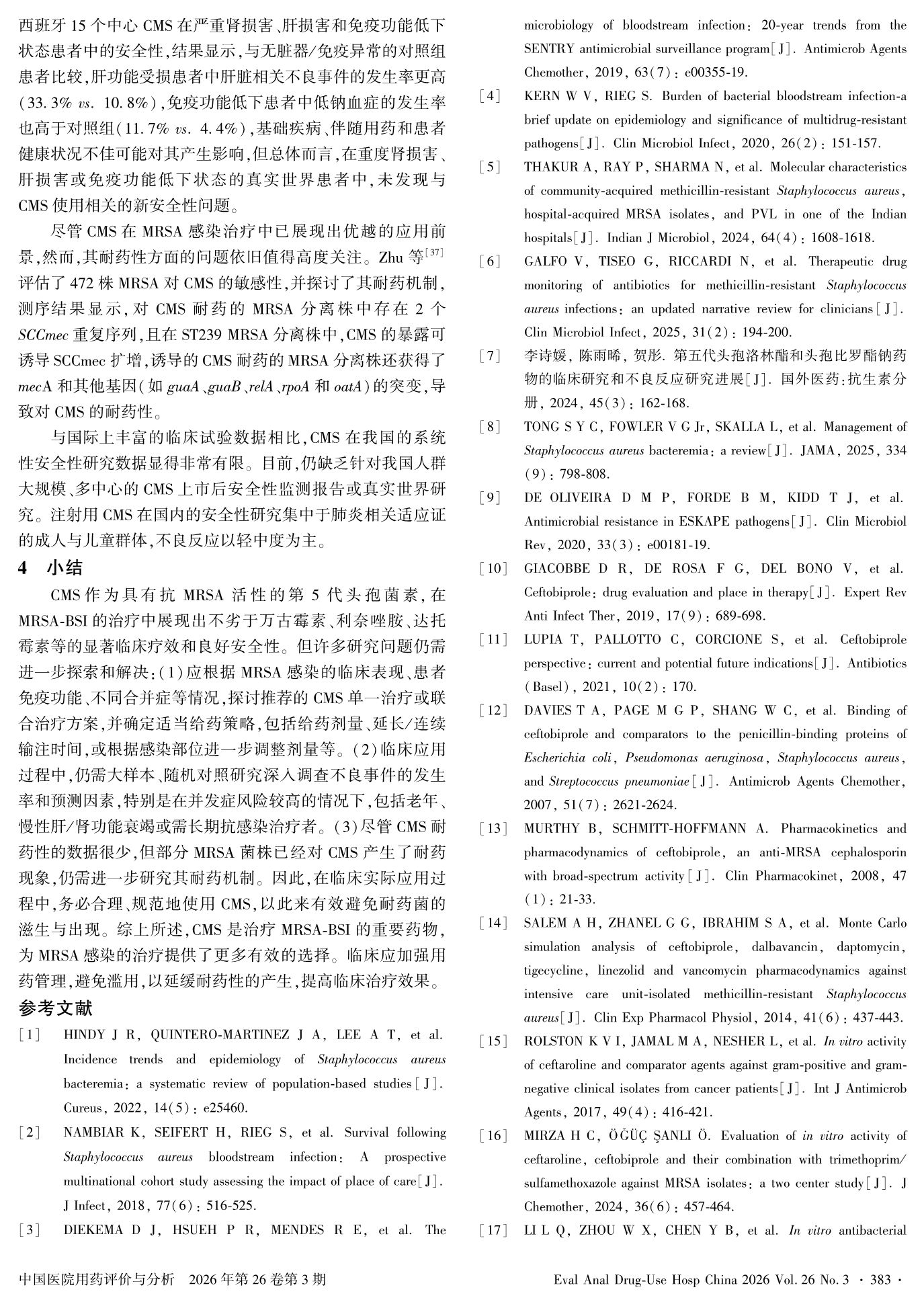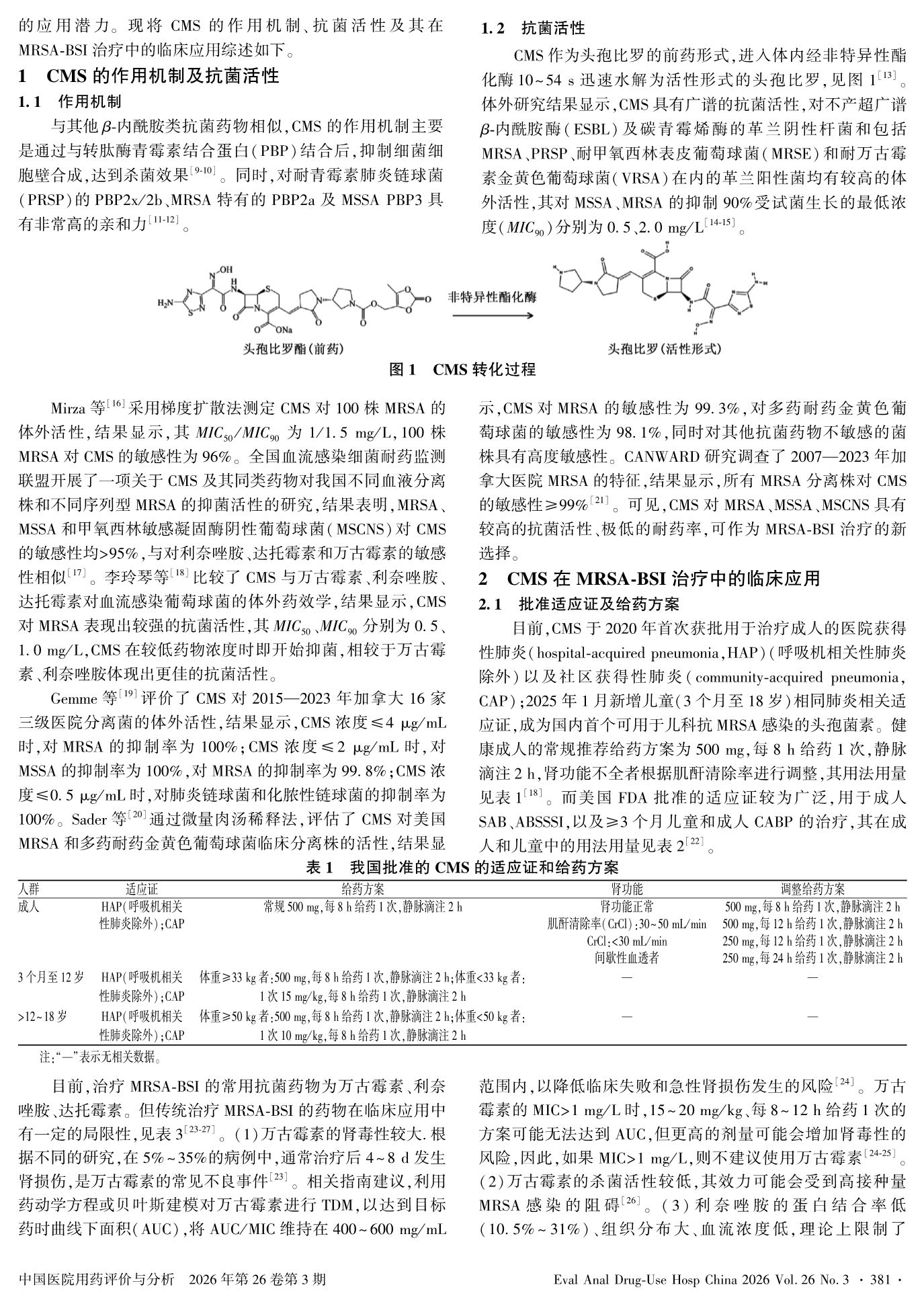 头孢比罗酯钠在耐甲氧西林金黄色葡萄球菌血流感染中应用的研究进展