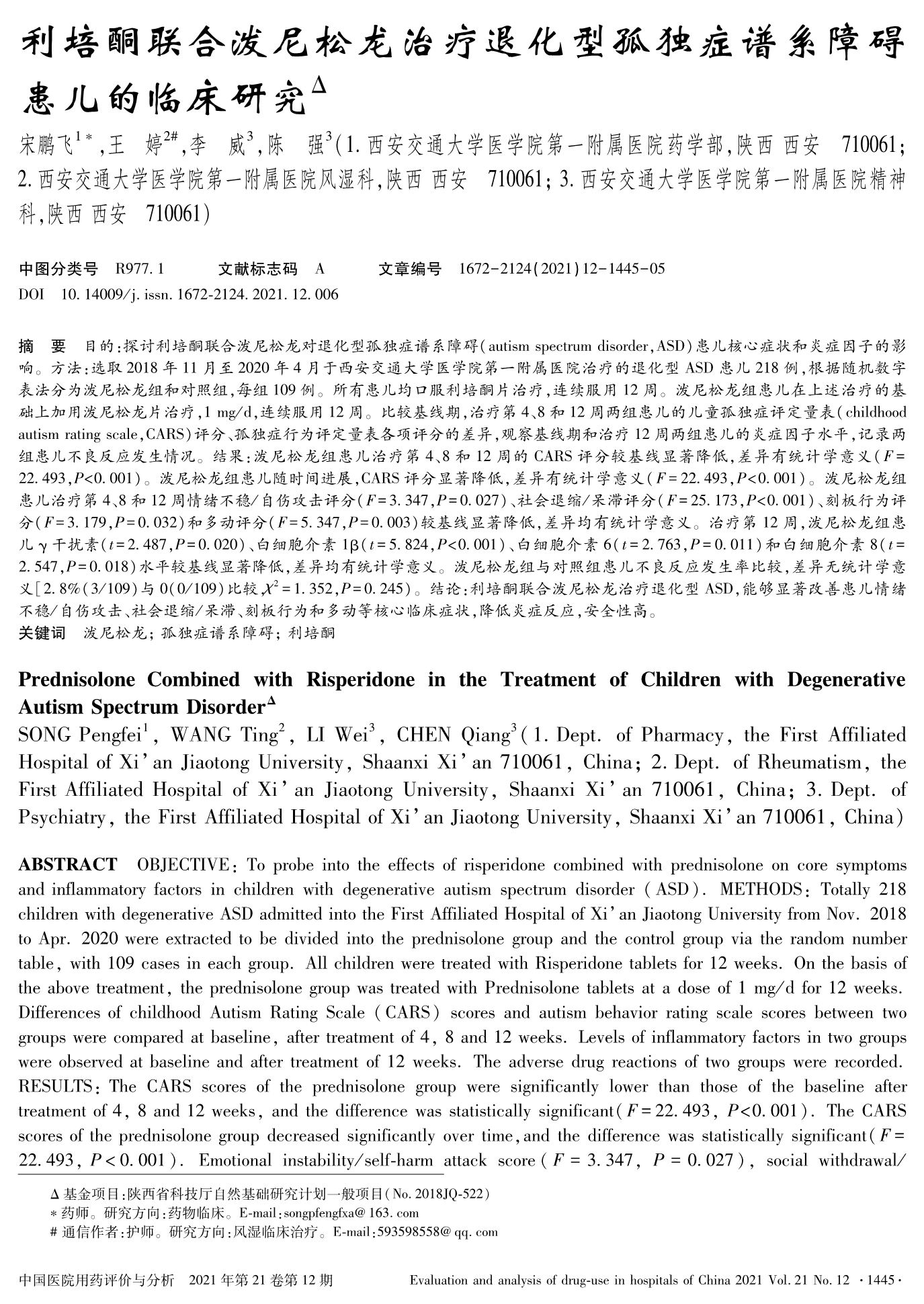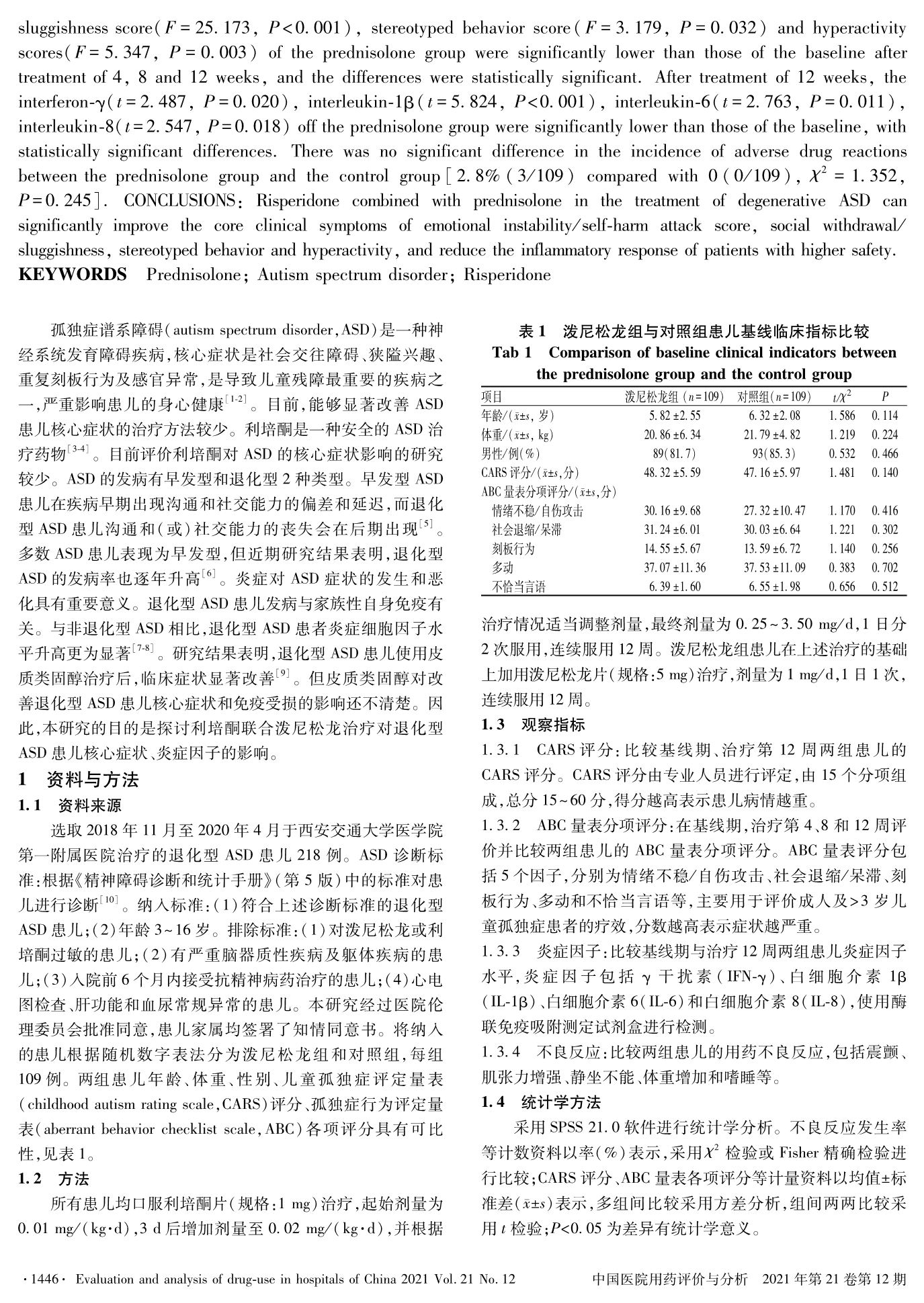 利培酮联合泼尼松龙治疗退化型孤独症谱系障碍患儿的临床研究