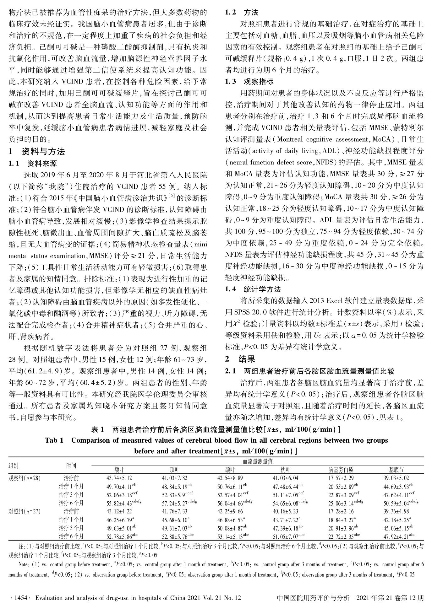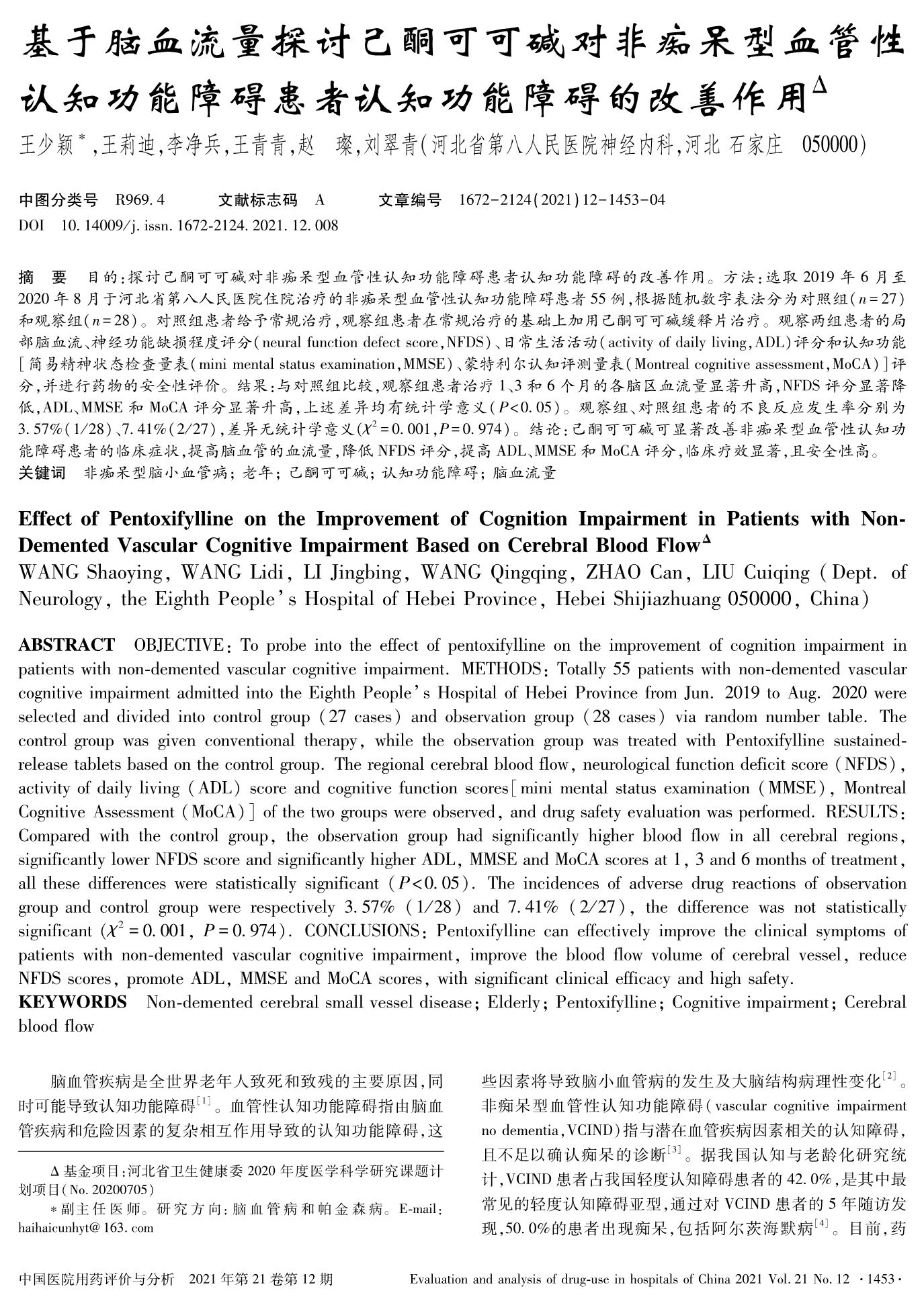 基于脑血流量探讨己酮可可碱对非痴呆型血管性认知功能障碍患者认知功能障碍的改善作用