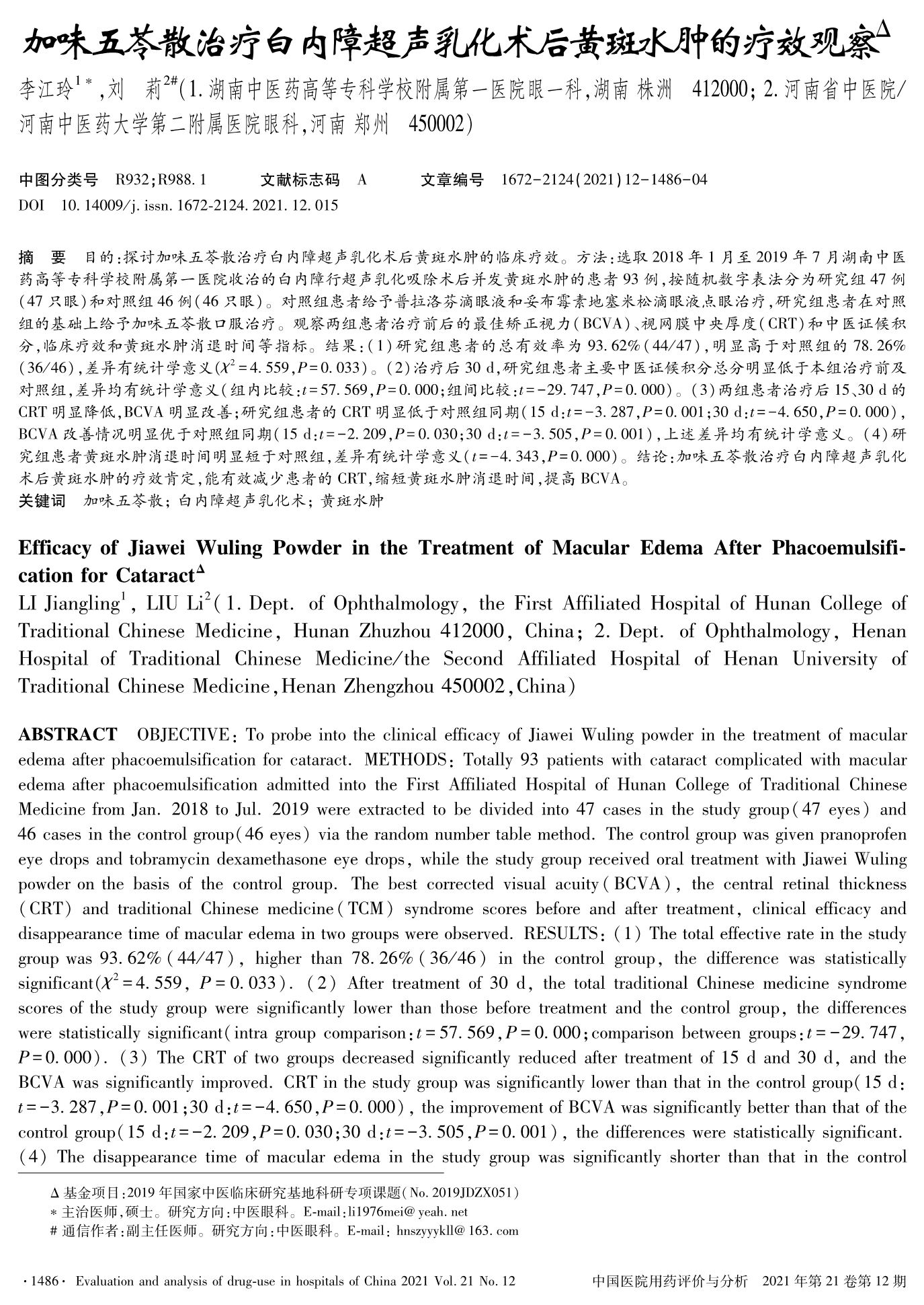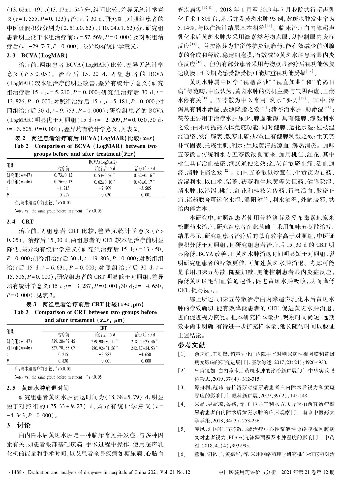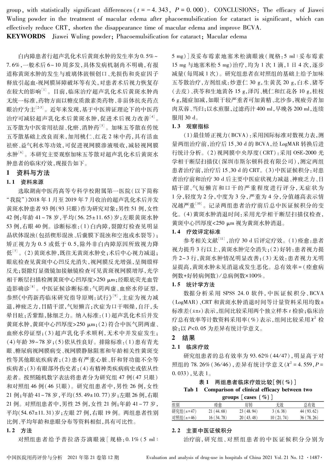 加味五苓散治疗白内障超声乳化术后黄斑水肿的疗效观察