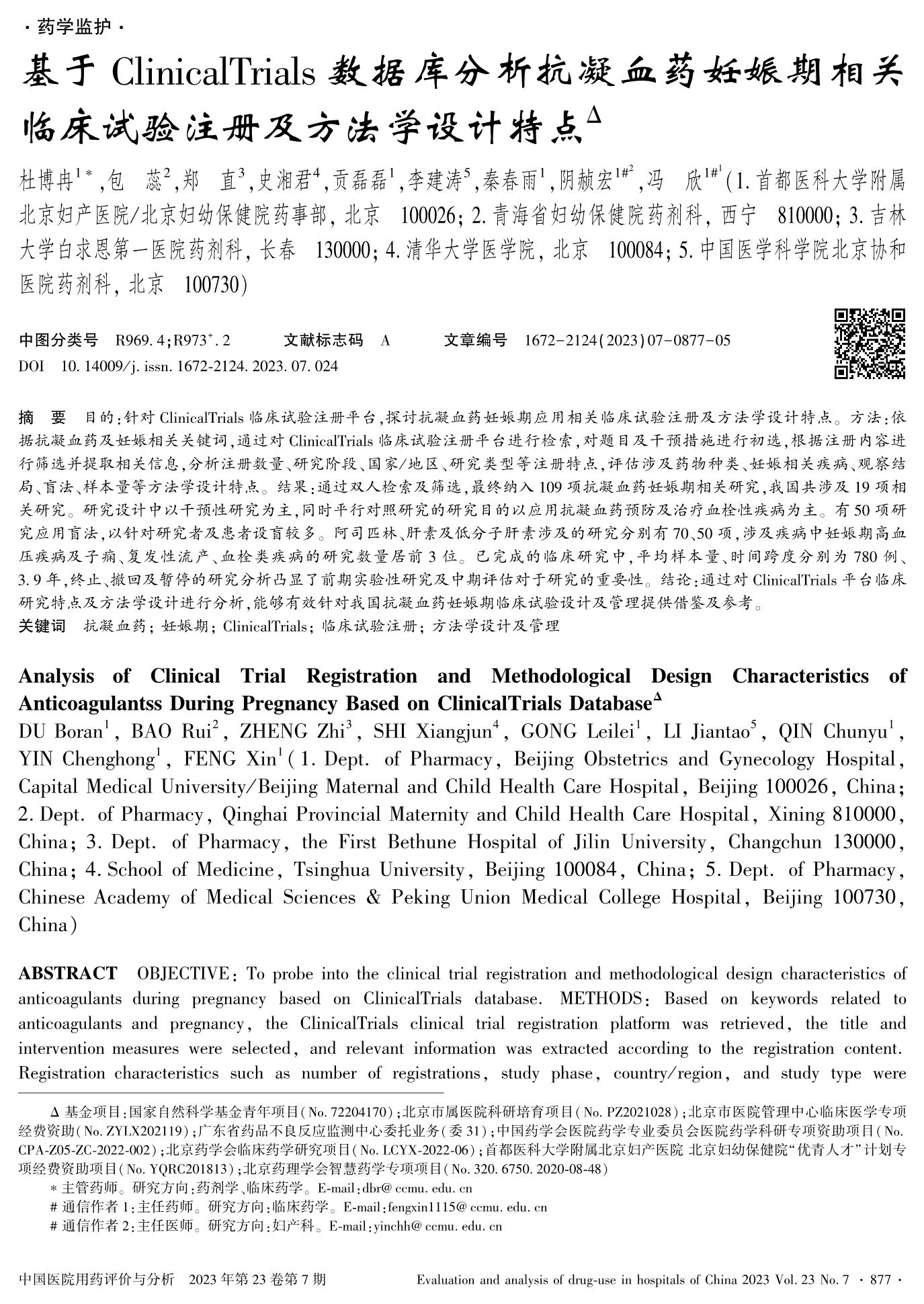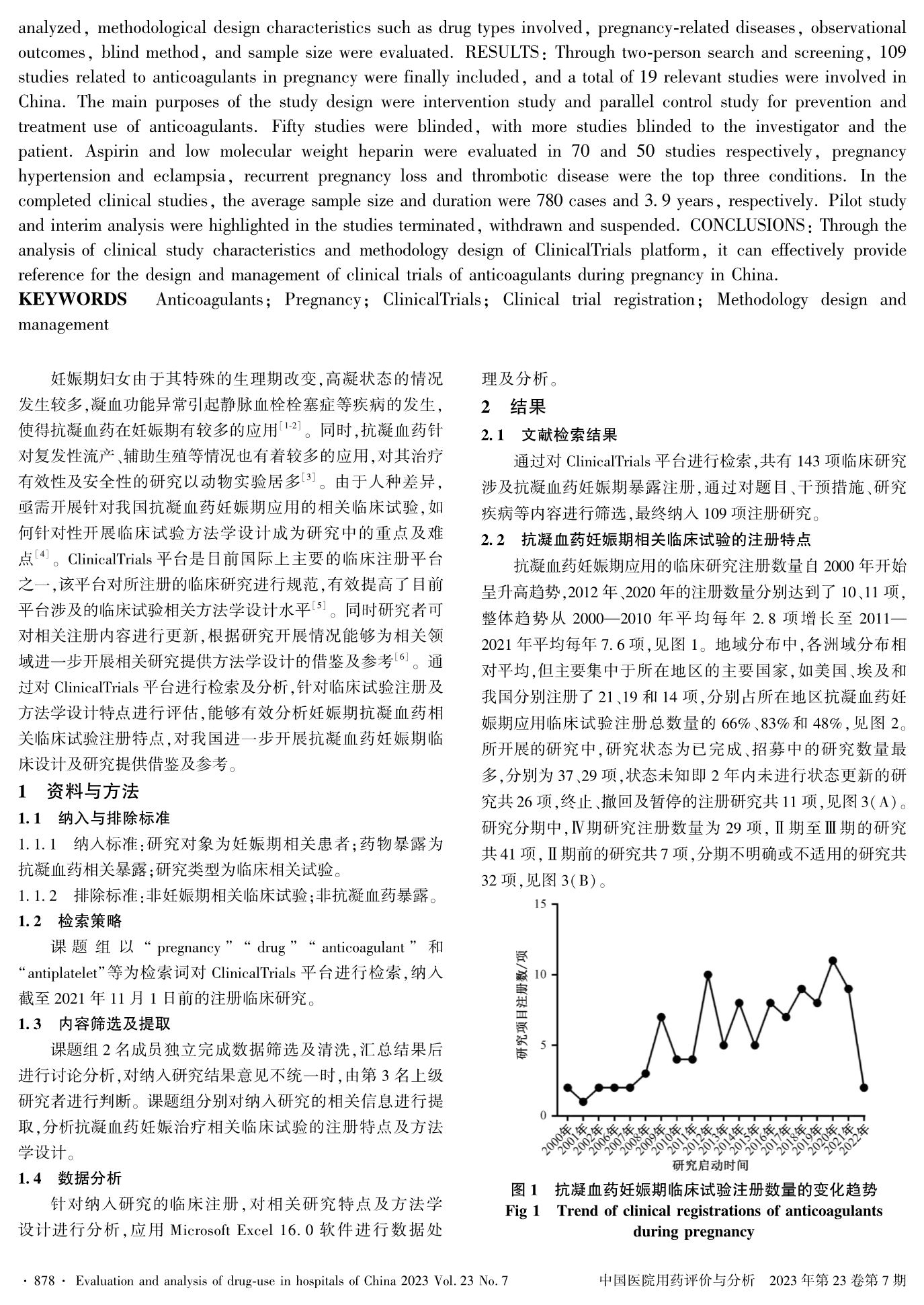 基于ClinicalTrials数据库分析抗凝血药妊娠期相关临床试验注册及方法学设计特点